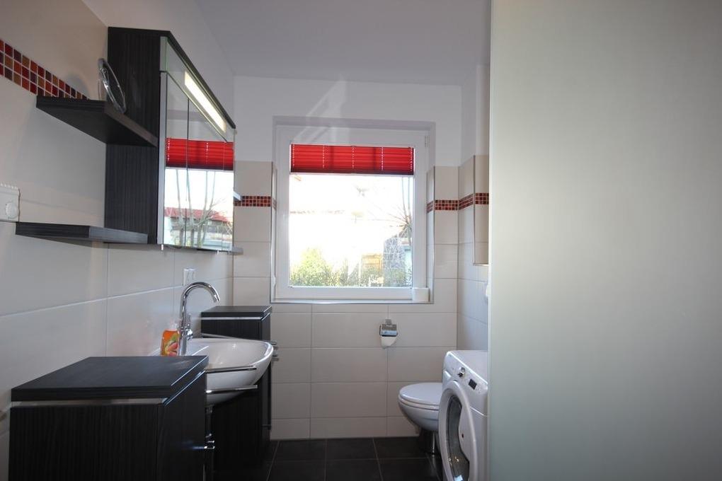 Im geschmackvollen, hellen Tageslicht-Duschbad steht auch eine Waschmaschine zur Verfügung.