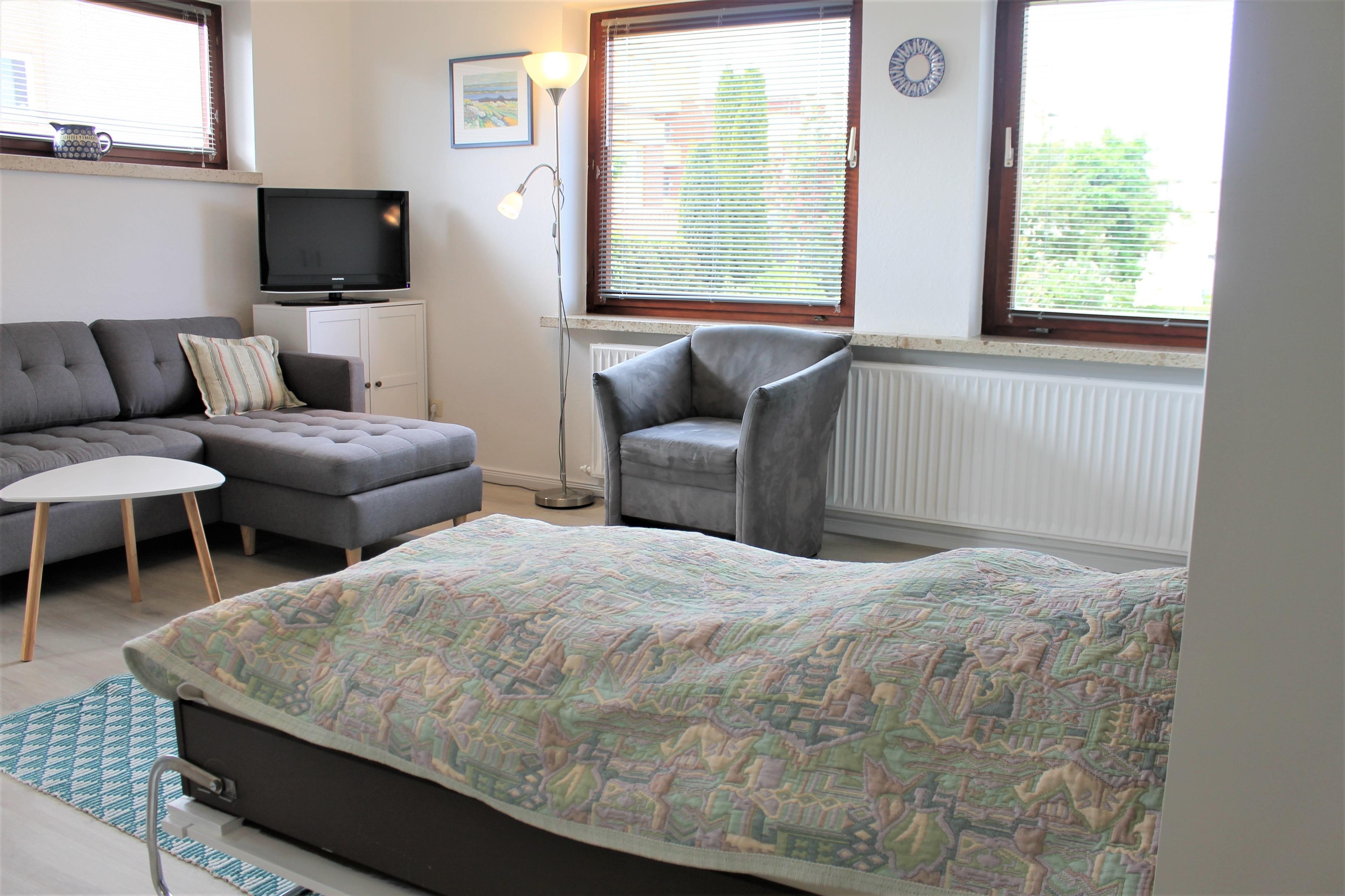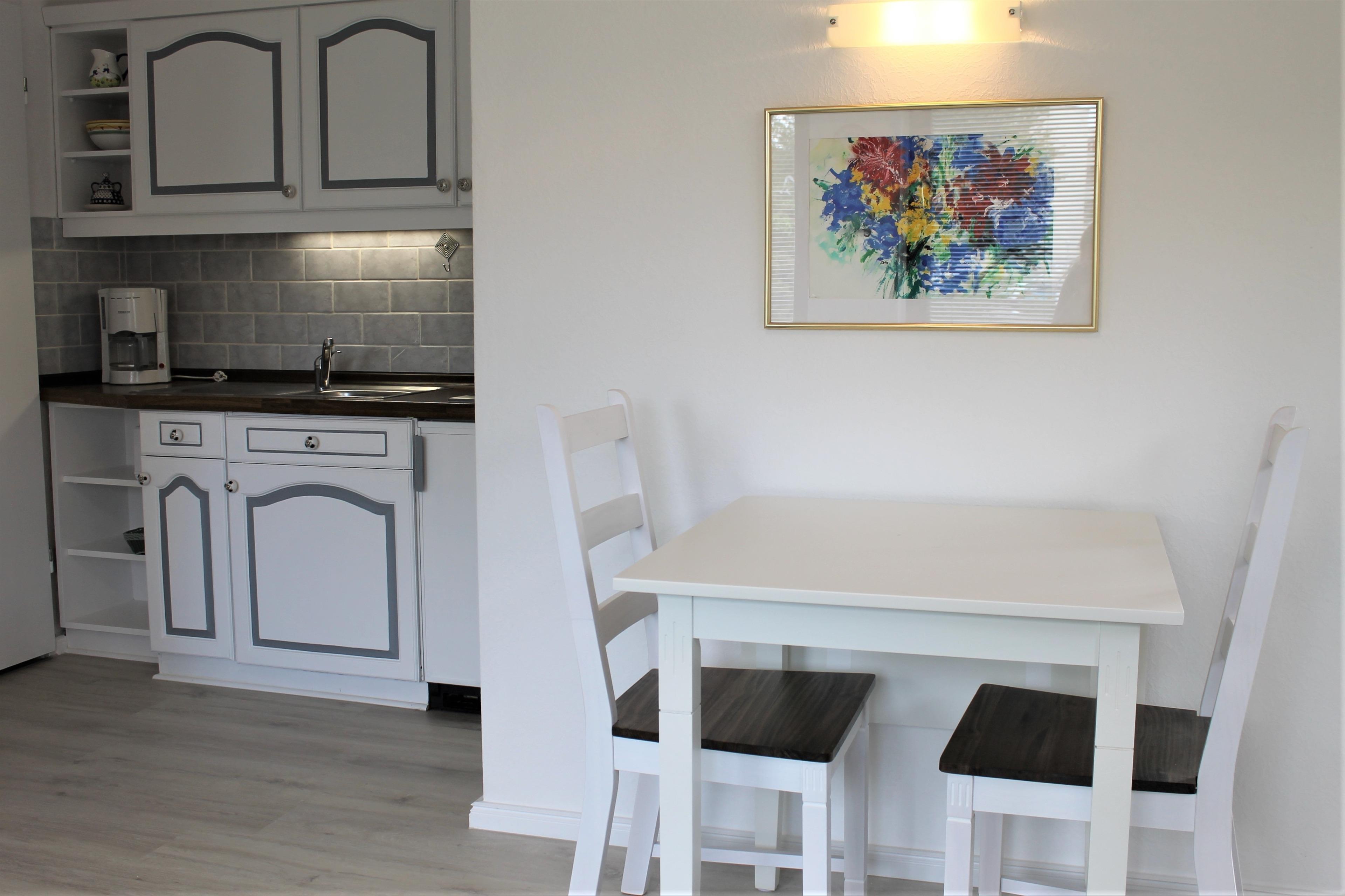 "Haus Barbara" - Die Wohnung Nr. 2 liegt im Erdgeschoss und ist ca.32 m² groß, sie bietet Platz für maximal 4 Personen (2 Erwachsene und 2 Kinder). Die Wohnung besteht aus einem Wohn-/ Schlafzimmer (Schrankbetten Maße 180 x 190 cm) mit einer offenen Küchenzeile und Essplatz. Die Küche ist u.a. mit Gefrierfach, Kaffeemaschine und 2-Plattenherd ausgestattet. Das kleinere Zimmer ist mit einem 160 ? 200 Doppel-Boxspringbett ausgestattet .Das Badezimmer verfügt über eine Dusche.