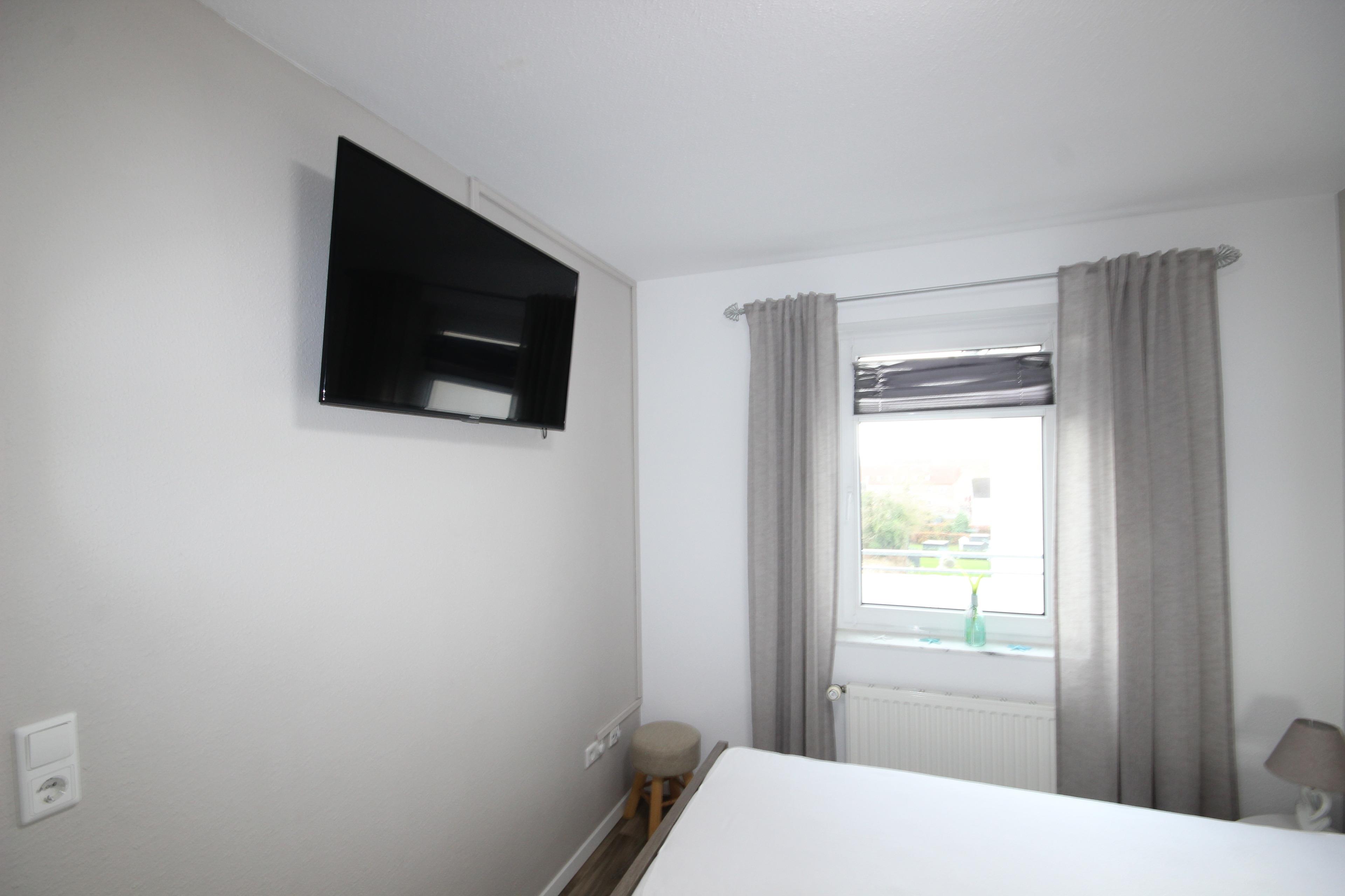 Das neue, freundliche Schlafzimmer verfügt über ein bequemes Doppelbett und Kleiderschrank.