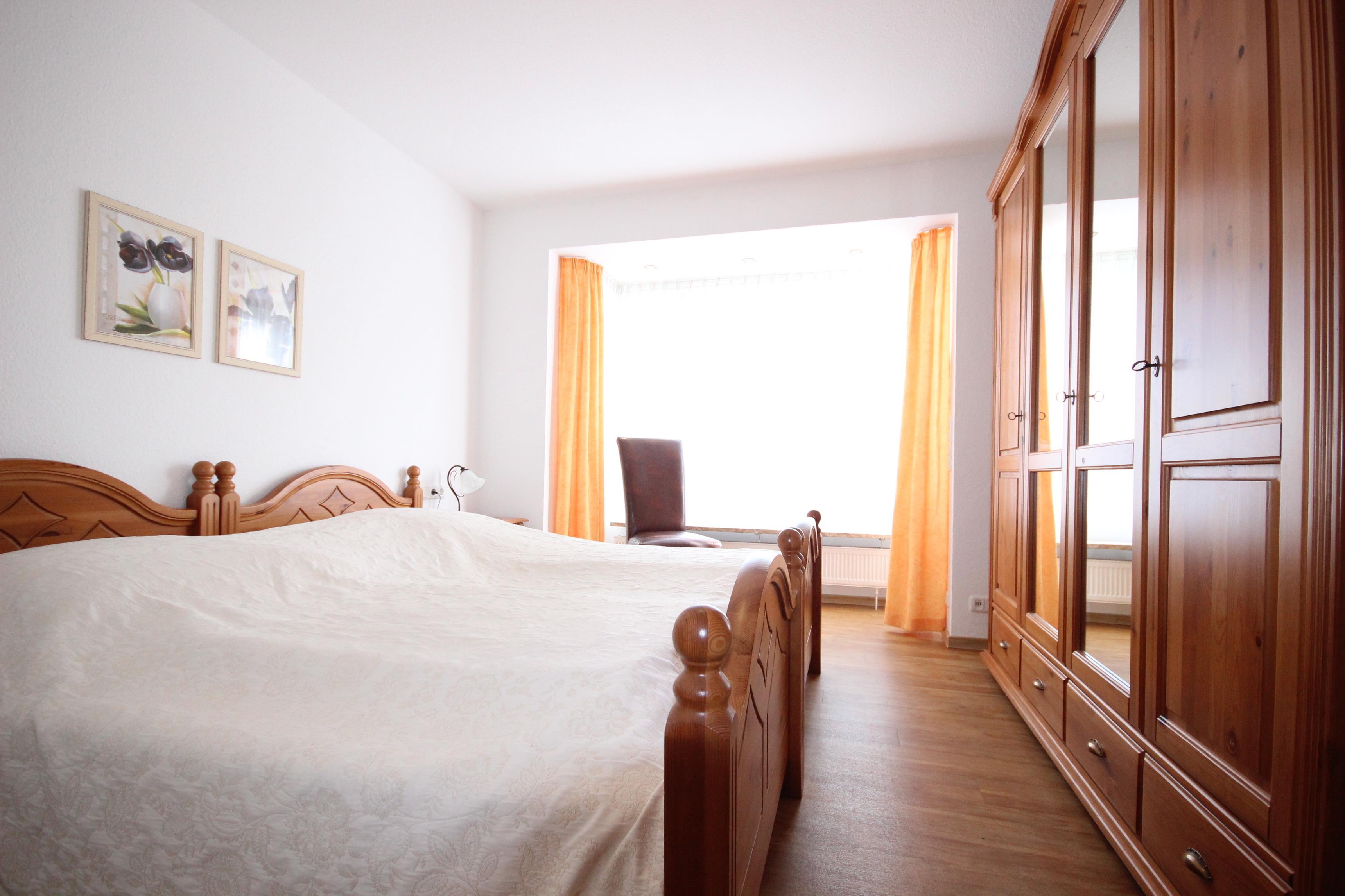 Das 2. Schlafzimmer ist möbliert mit Doppelbett & Kleiderschrank.
