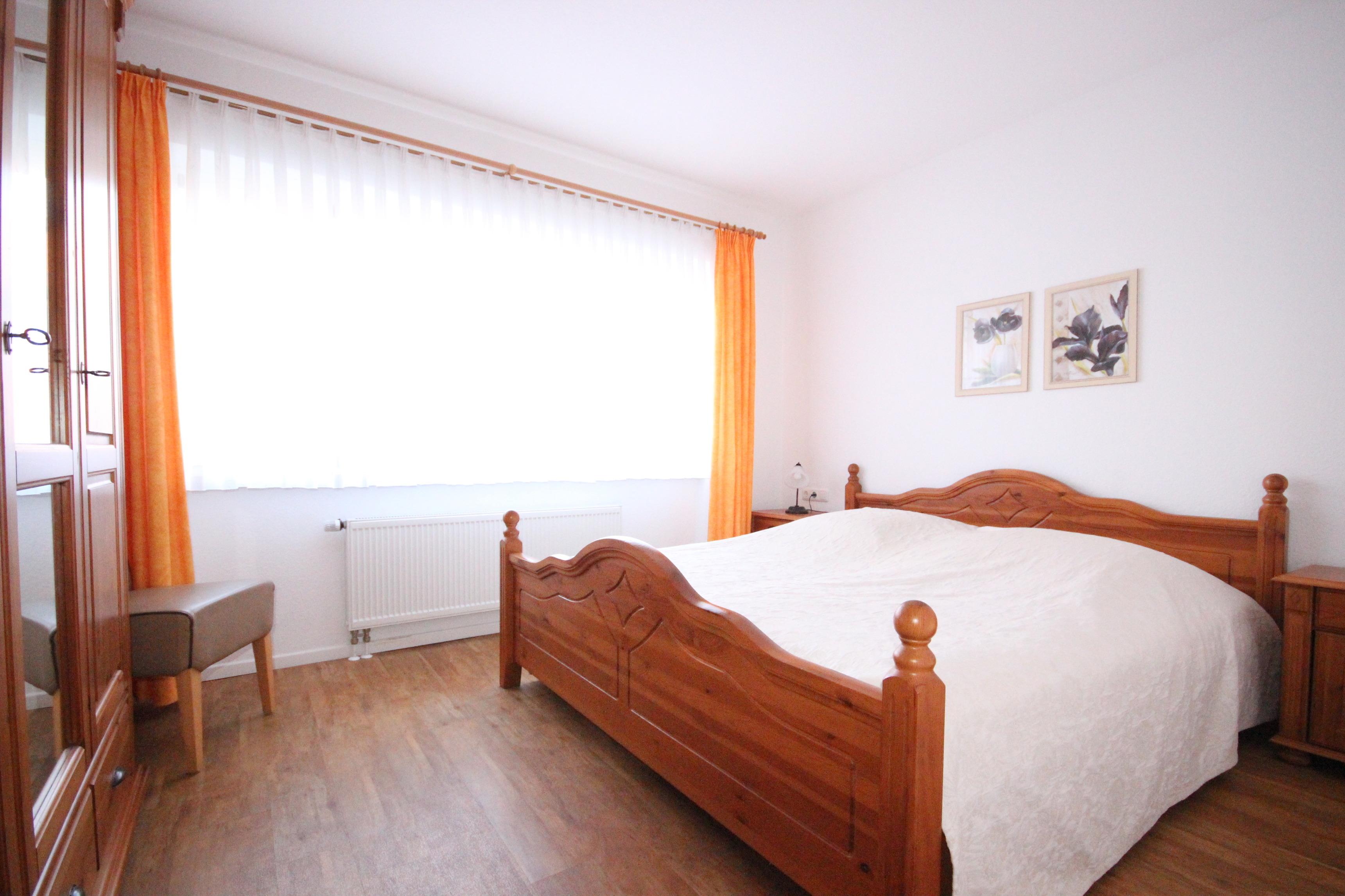 Das 2. Schlafzimmer ist möbliert mit Doppelbett & Kleiderschrank.