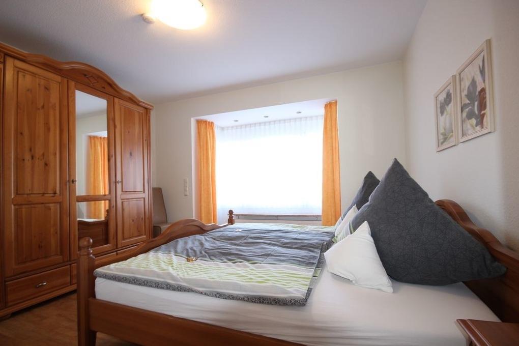 Im Schlafzimmer ist ein Doppelbett & Kleiderschrank vorhanden.