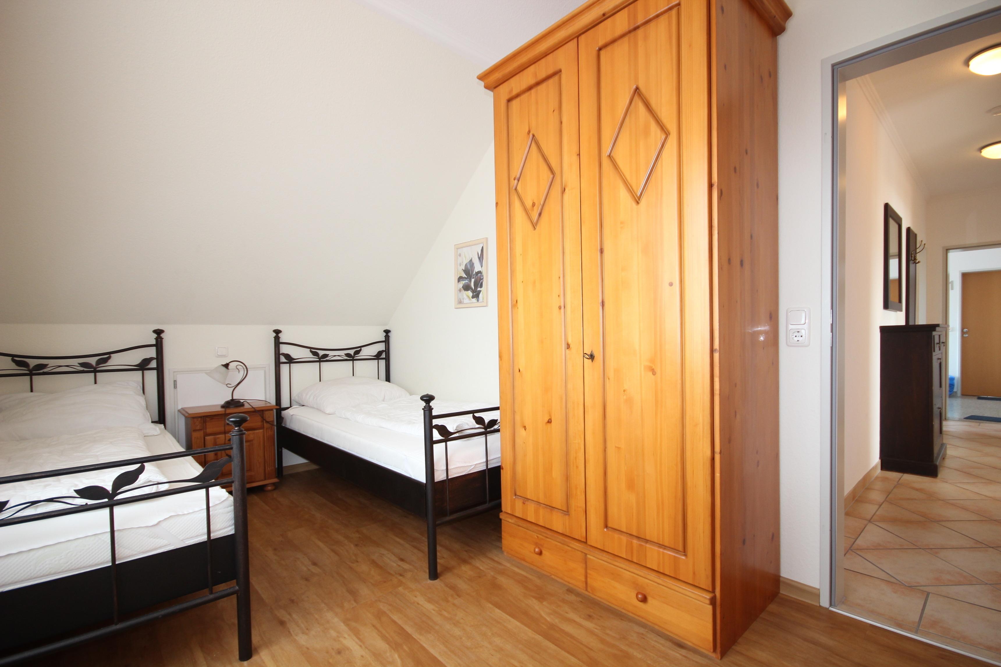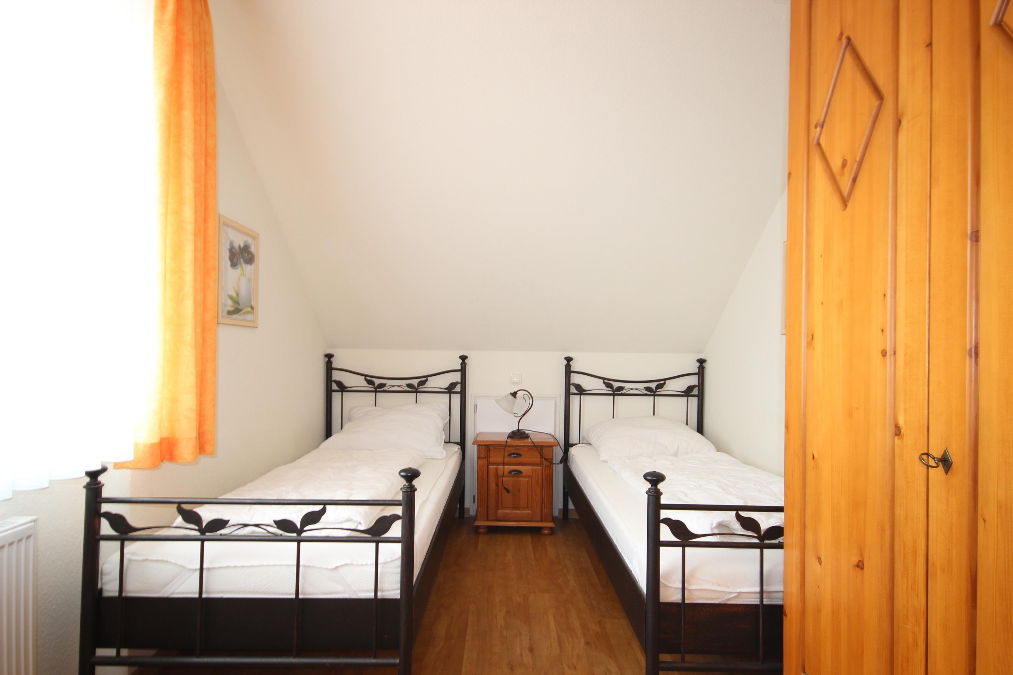 Das 2. Schlafzimmer ist möbliert mit 2 Einzelbetten & Kleiderschrank.