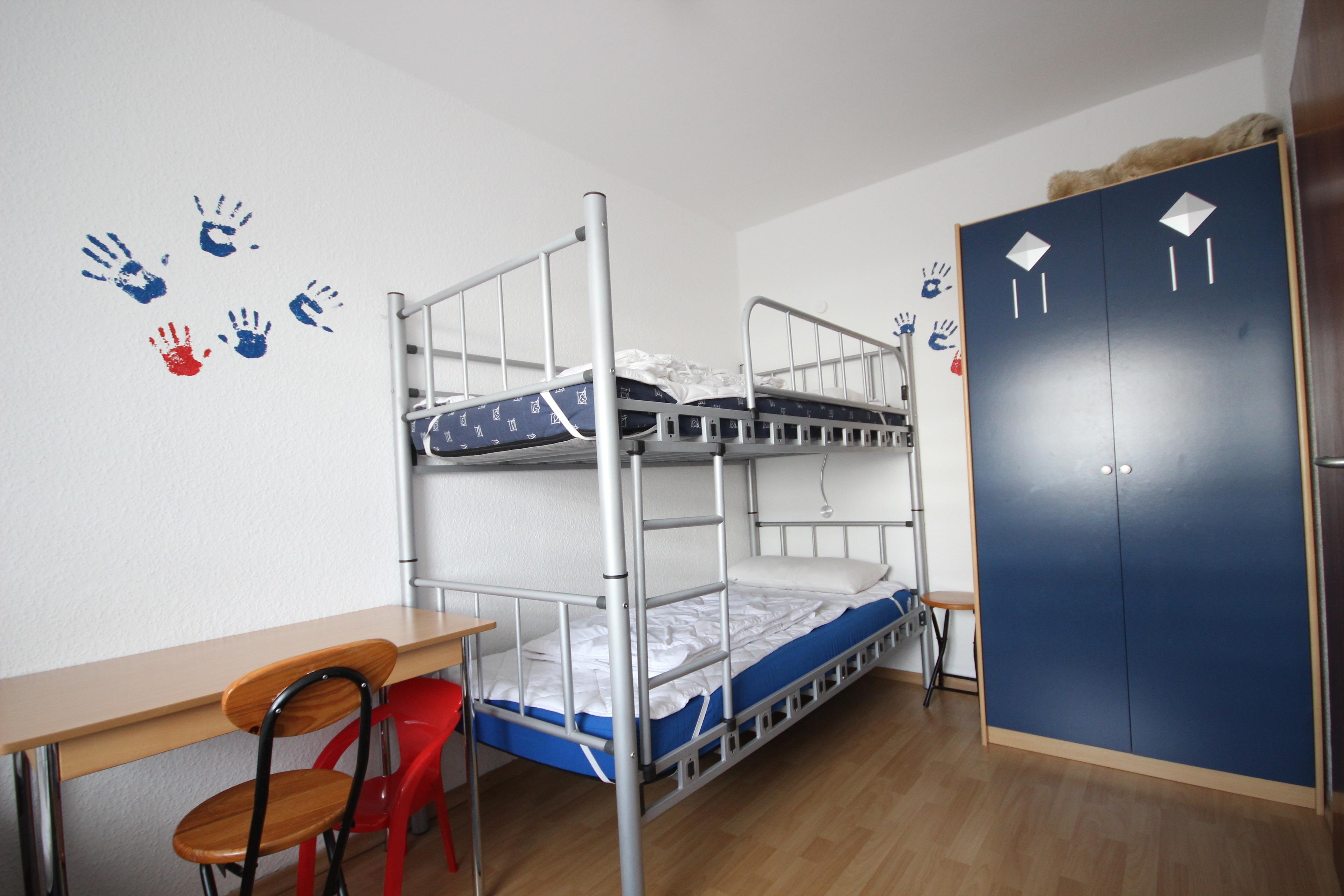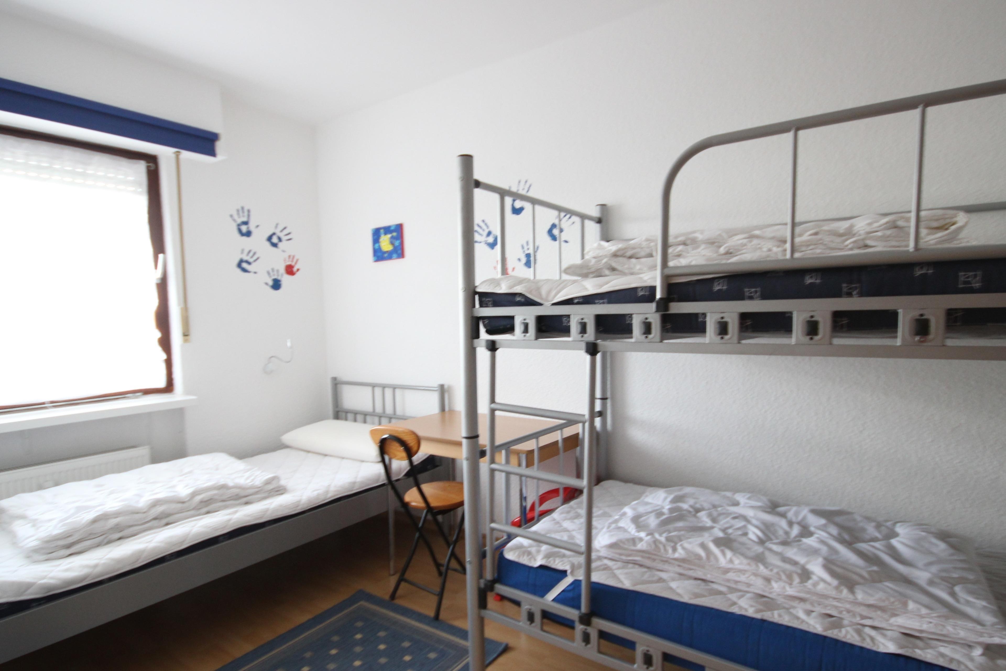 Das 2. Schlafzimmer ist möbliert mit einem Etagenbett und Einzelbett.