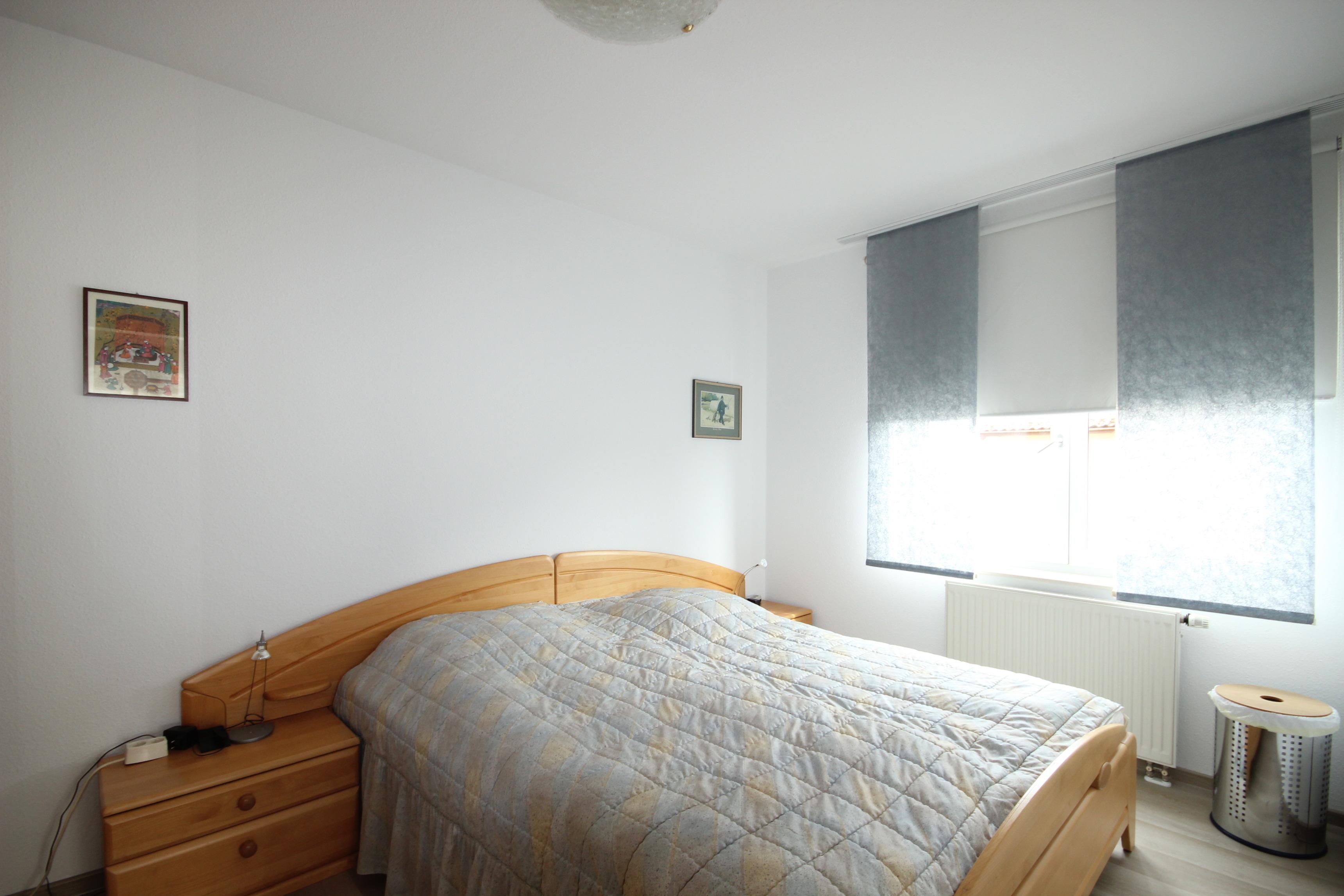 Der Schlafbereich ist mit einem komfortablen Ehebett & Kleiderschrank ausgestattet.