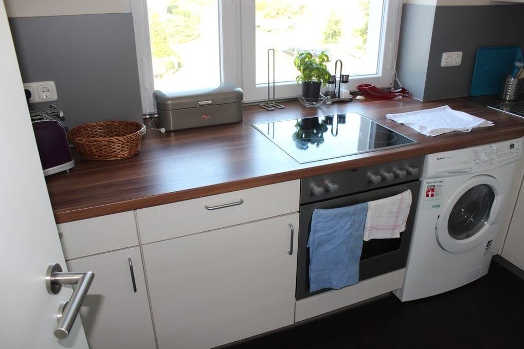 Die moderne Küche ist mit Cerankochfeld- Backofen, Geschirrspüler, Kühlschrank/ Gefrierfach, Waschmaschine/ Trockner und den üblichen Küchengeräten sehr gut ausgestattet.
