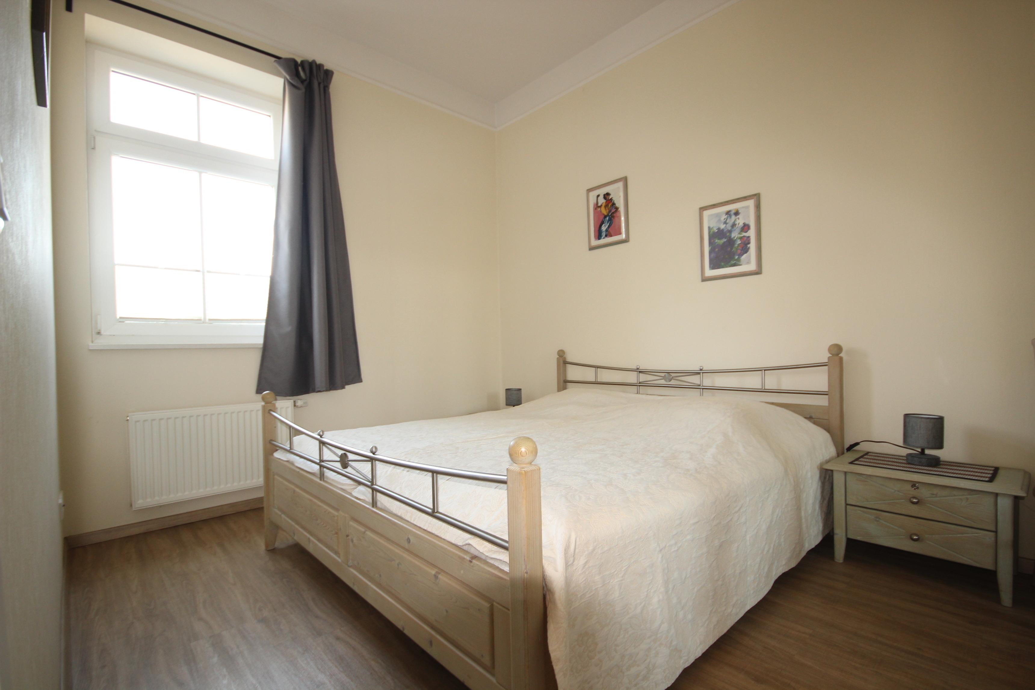 Im Schlafzimmer befinden sich ein Ehebett, Kleiderschrank & lichtdichte Gardinen.