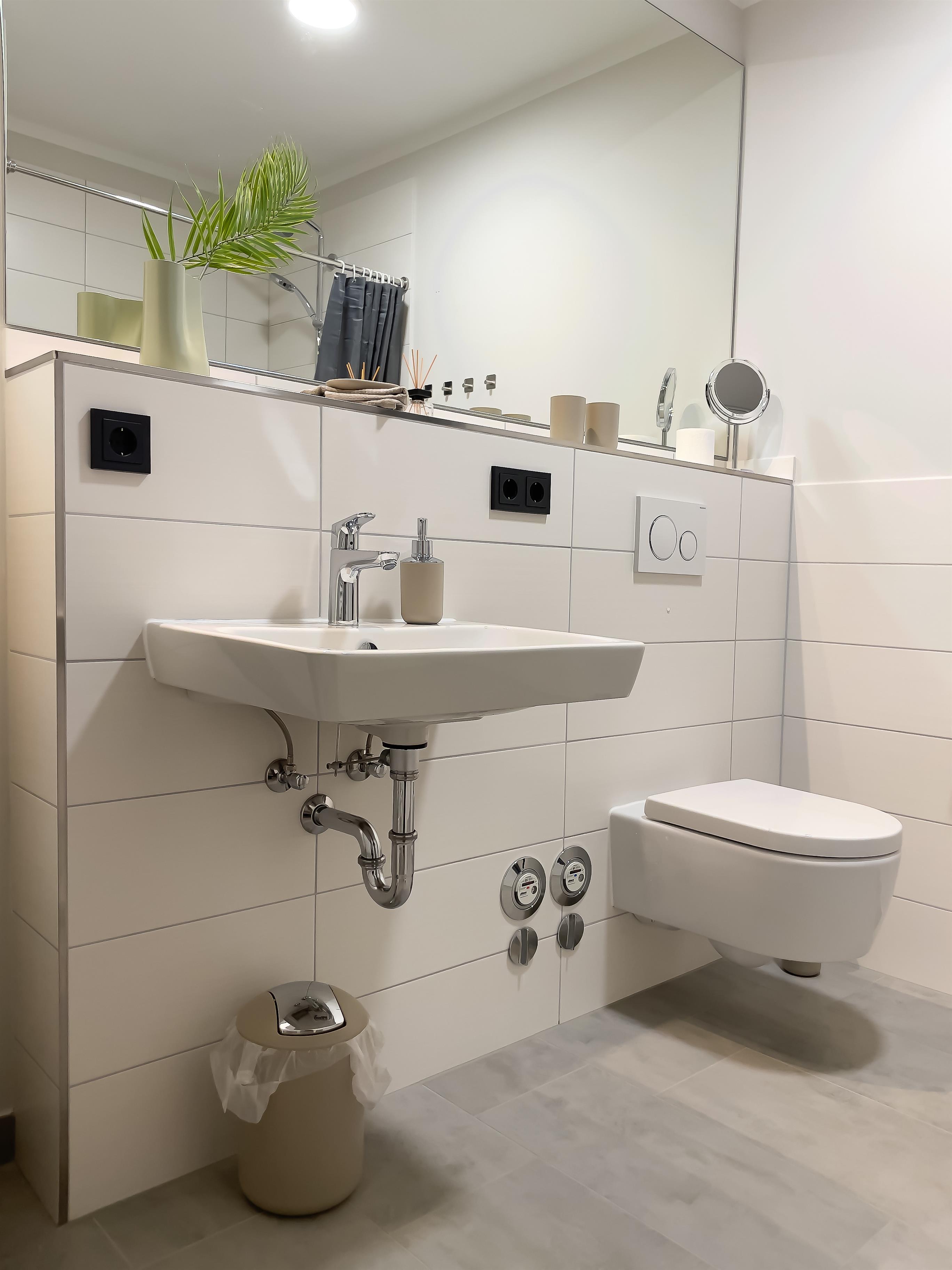 Auch die beiden Schlafräume verfügen jeweils über einen eigenen Fernseher mit SAT-Anschluss. Die gesamte Wohnfläche einschließlich dem Badezimmer ist mit Fußbodenheizung ausgestattet.