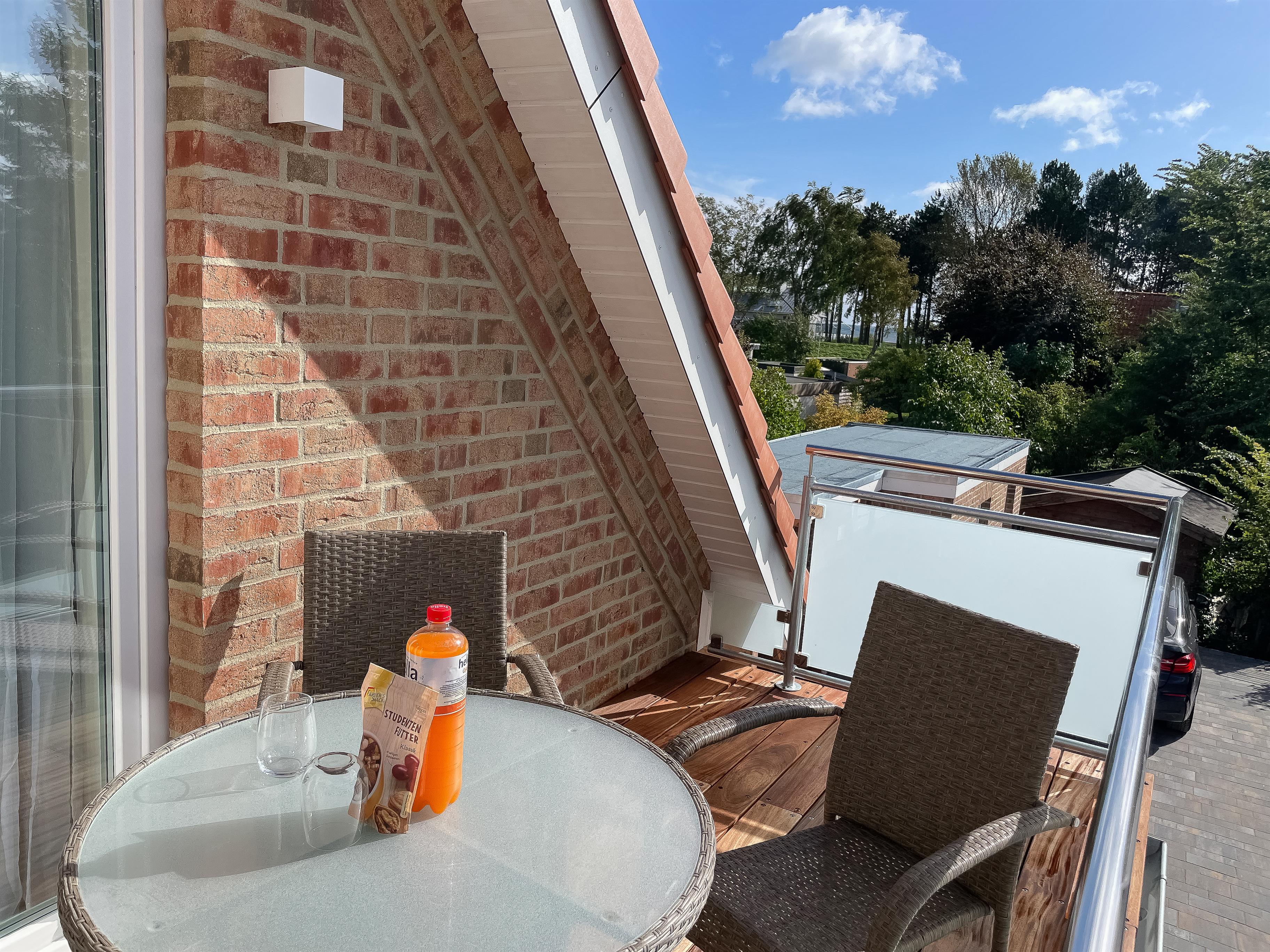 Vom Balkon können Sie einen Blick auf die Ostsee erhaschen und genießen den ganzen Tag Sonne und Meeresbrise.
