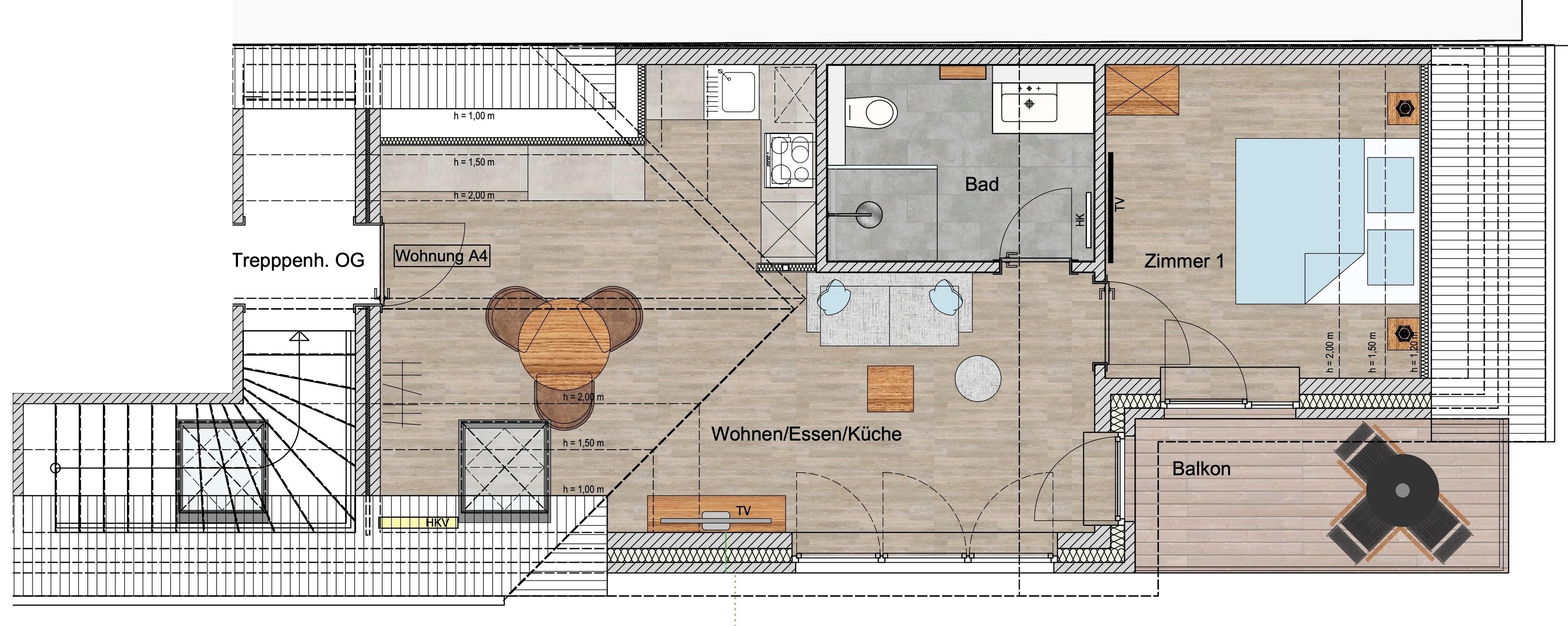 Das Apartment A4 bietet das absolute Plus an Licht und Aussicht. Der helle Wohnraum mit seinen riesigen Fensterflächen und das großzügige Schlafzimmer mit Balkon-Austritt für den morgendlichen Ostseeblick sind Highlights dieses Trend-Apartments.