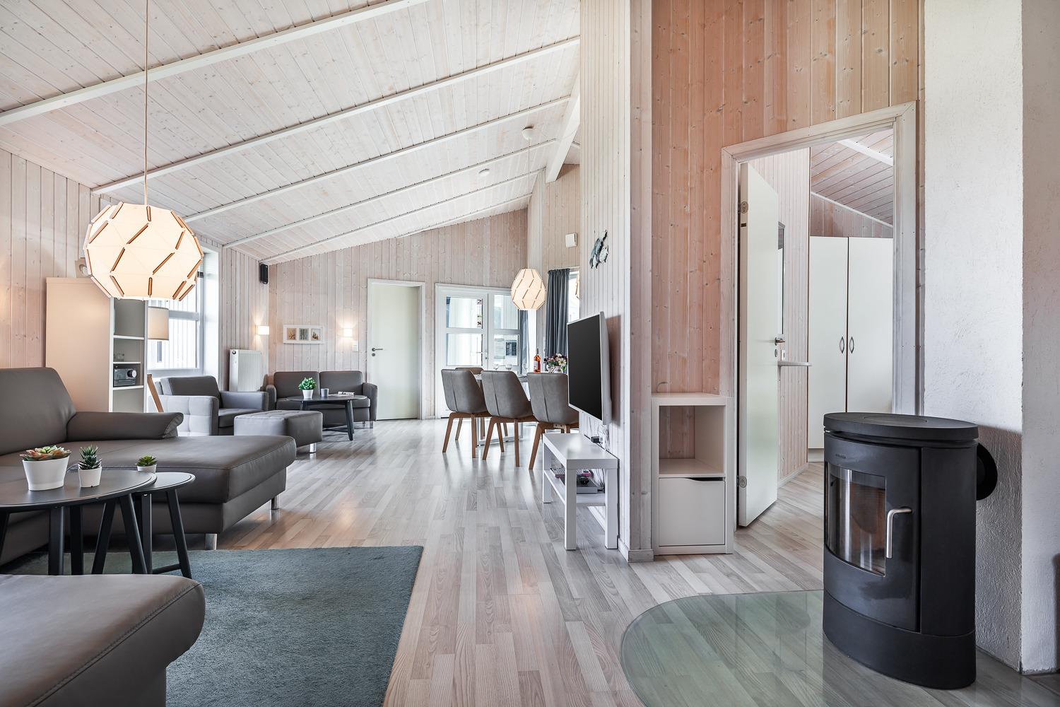 Hus Lykke zeichnet sich durch seine attraktive, ruhige Lage mit seiner großen, sonnigen Terrasse aus, mit Blick in das angrenzende Naturschutzgebiet. Der große Garten des ca. 1000 m2 großen Grundstücks lädt zum Verweilen, Entspannen und Spielen ein. Drei eigene Pkw-Parkplätze befinden sich direkt am Haus. Das helle, lichtdurchflutete Ferienhaus verfügt über eine neue, komplett ausgestattete Küche. Das geschmackvolle Wohnzimmer mit angrenzendem, geräumigen Essbereich ist mit SAT-TV, DVD-Player, Stereoanlage und einem Kaminofen für ein gemütliches Ambiente am Abend ausgestattet. Das Haus bietet 5 Schlafzimmer, 1 Babybett (Kinderreisebett), 1 Kinderhochstuhl, 2 Bäder, 3 Duschen und 1 Wasch-Trockner. Verbrauchskosten sind exklusive. Gruppenreisen nur auf Anfrage! Keine Haustiere!