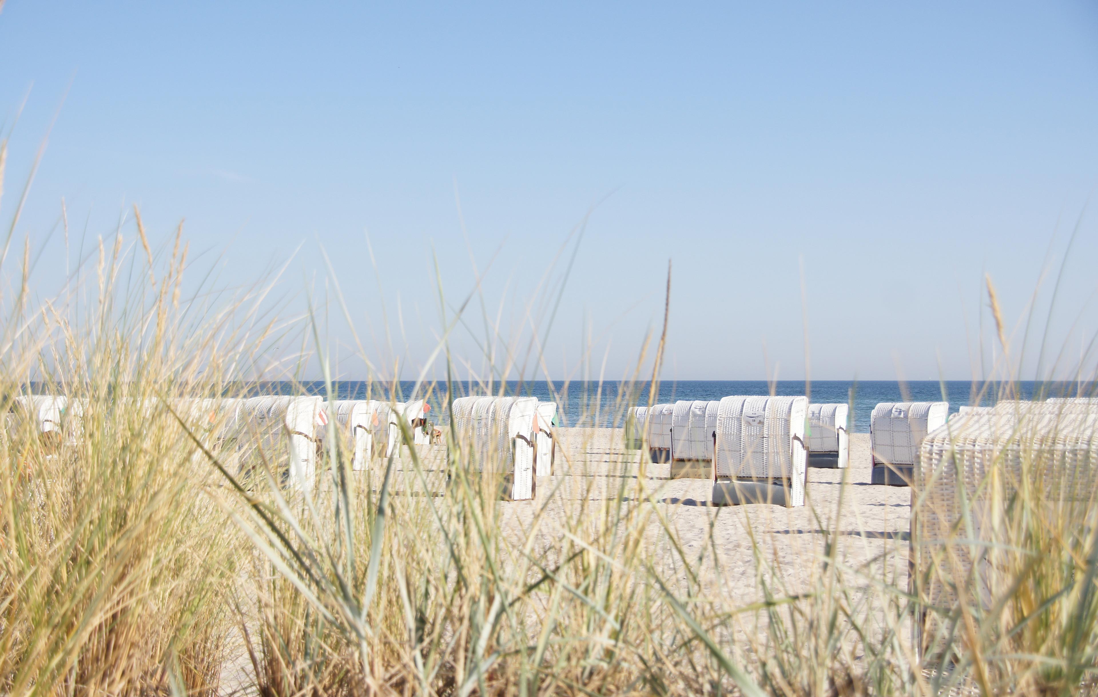 Einmal in die Sterne blicken und romantisch zu Zweit eine ganze Nacht am Strand verbringen. Strandkorb steht Nähe einer Düne im Windschutz mit Blick auf die Ostsee.