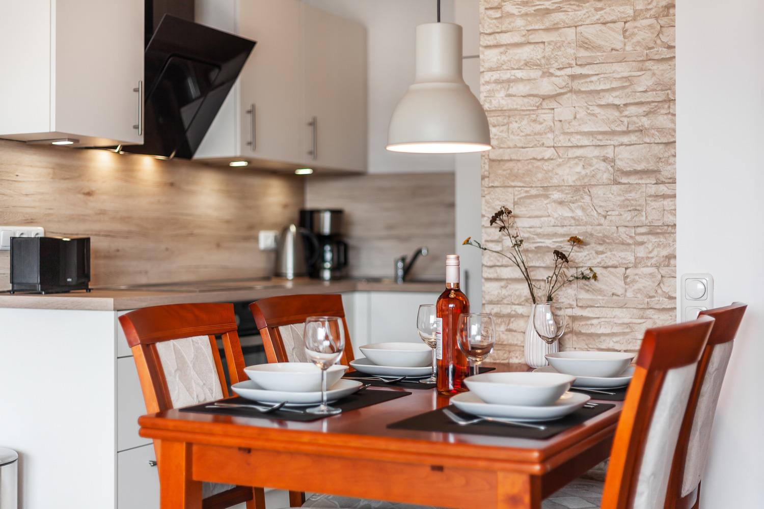 Damit Ihr Hund nicht zu kurz kommt, ist auch der Hundestrand nicht weit entfernt. Denn bis zu zwei Hunde dürfen selbstverständlich in dieser Wohnung ihren wohlverdienten Urlaub mit Ihnen genießen.
