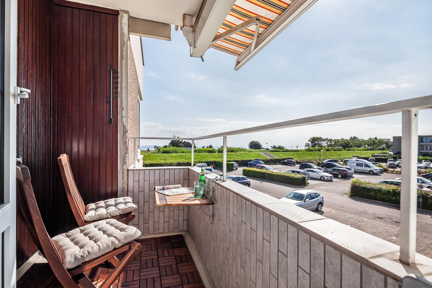 Das gemütlich eingerichtete Wohnzimmer bietet Ihnen eine hochwertige Schlafcouch (120x200) zum ausklappen, einen Esstisch mit 4 Stühlen und einen großen SAT-Flat-TV, der zu entspannten Abenden einlädt. Erholen Sie sich nach einem aufregenden Urlaubstag auf dem eigenen Balkon mit Blick auf die Ostsee.