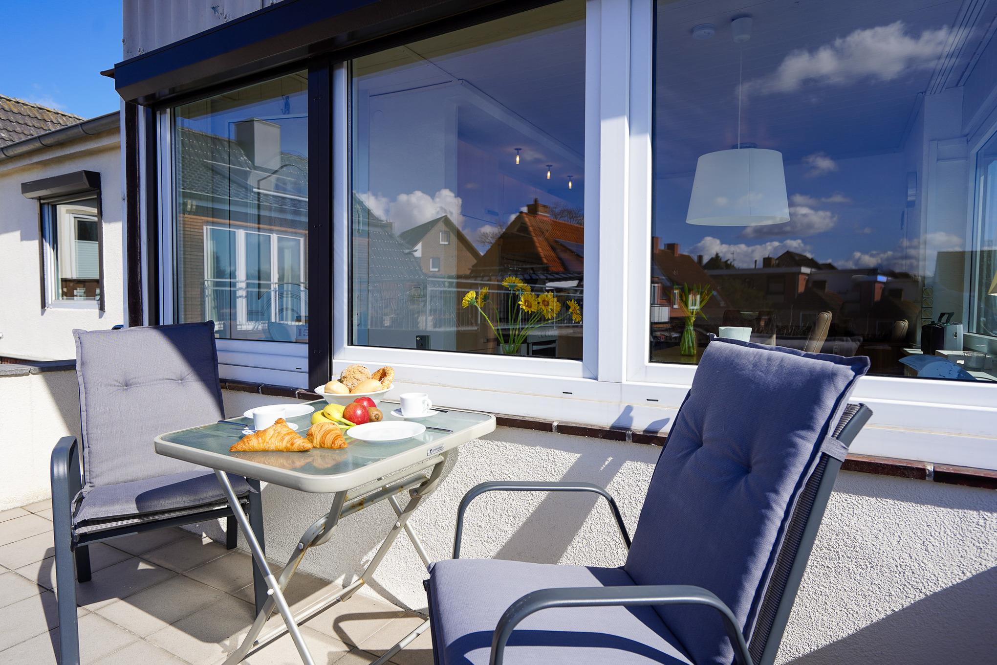 Entspannen Sie nach einem Strandtag auf Ihrem nach Süd-West ausgerichteten Balkon. Für Ihren PKW steht ein kostenloser Stellplatz zur Verfügung.