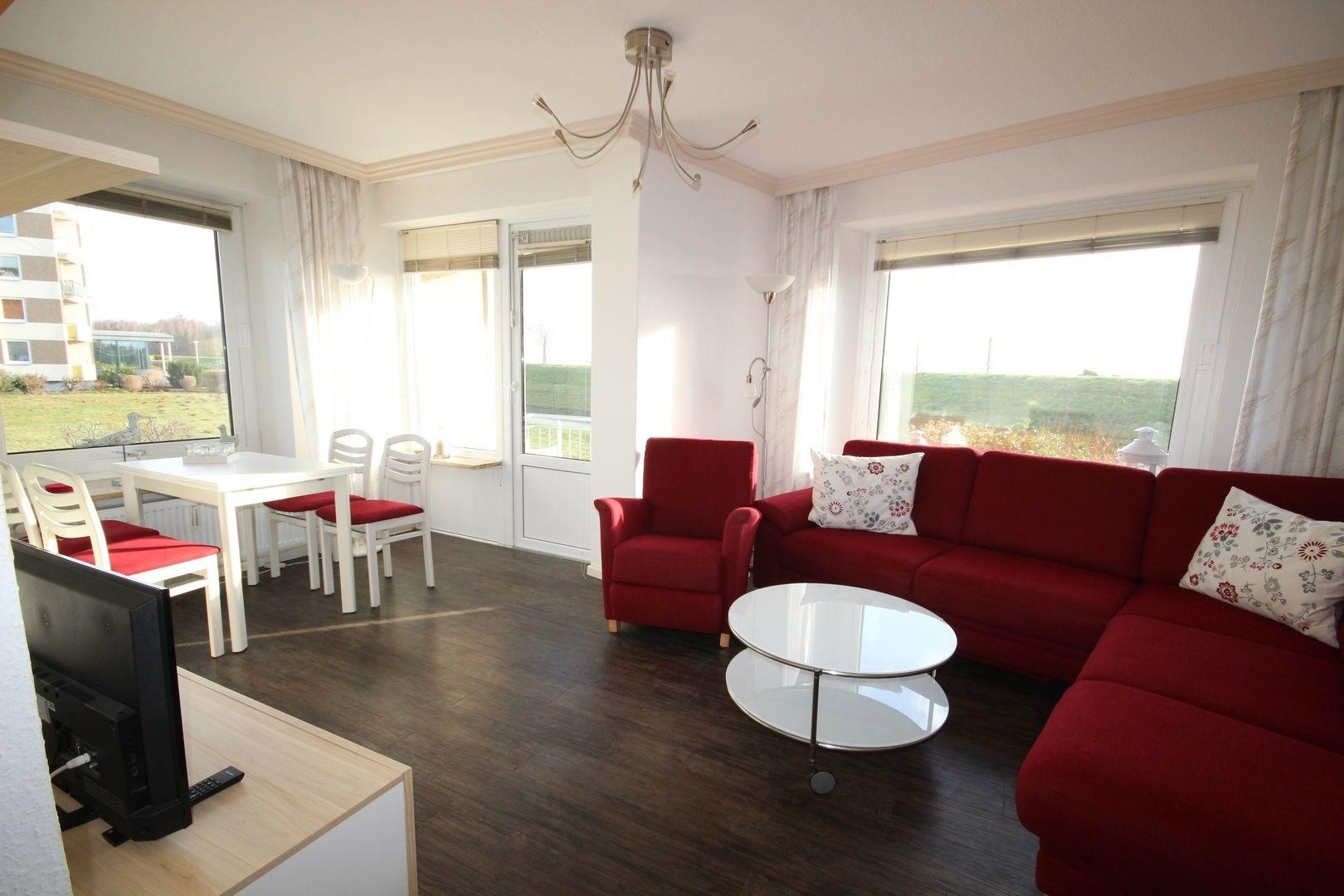 Freundliche 2-Zimmer-Wohnung mit 44m² in direkt am Deich mit kleinem Balkon für 2-4 Personen.
