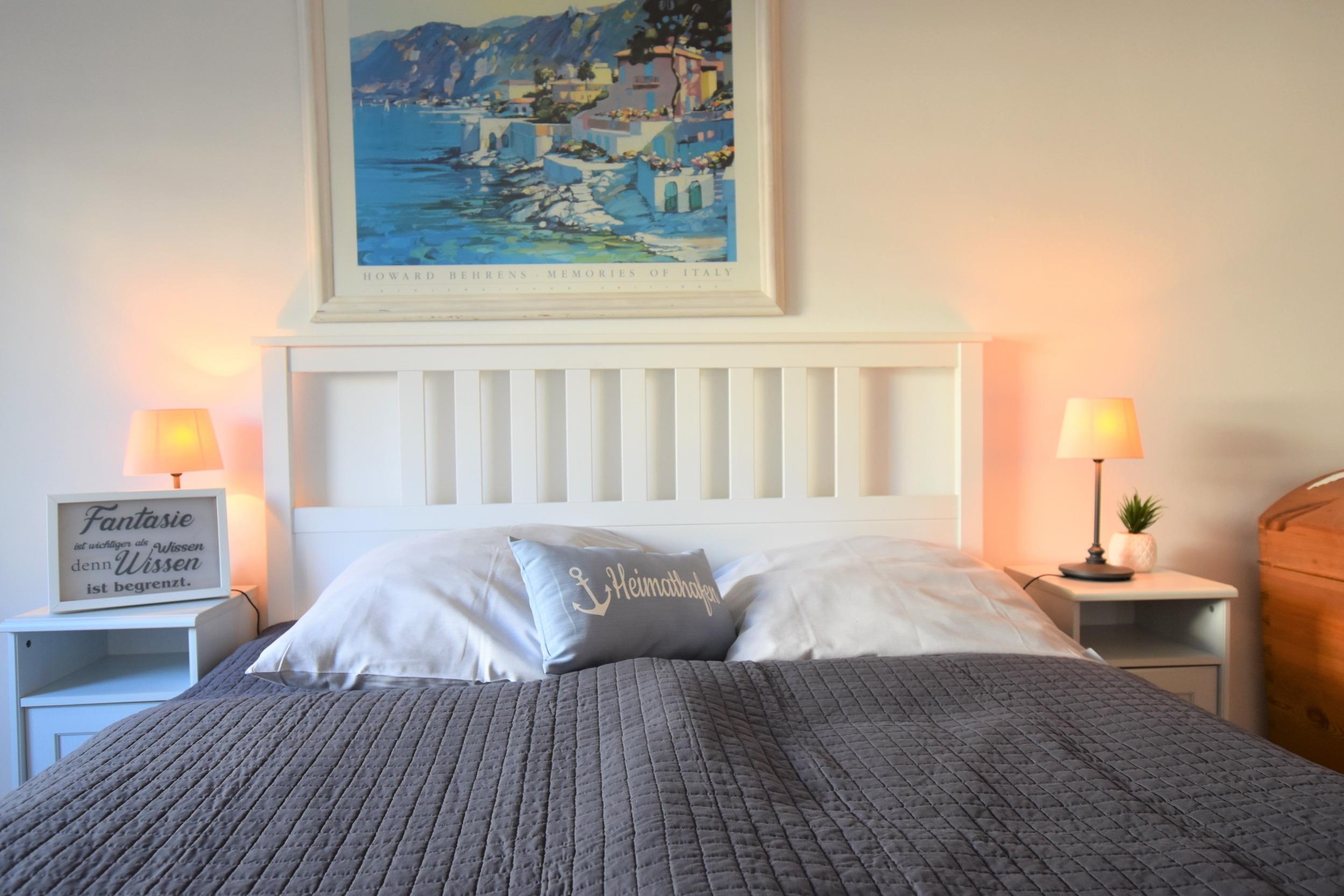 - Schlafzimmer: Ein Schlafzimmer mit einem Doppelbett (2x 90 cm x 200 cm), Nachtschränken und einem Kleiderschrank sorgt für erholsame Nächte. Verdunkelungsrollos garantieren einen ruhigen Schlaf.