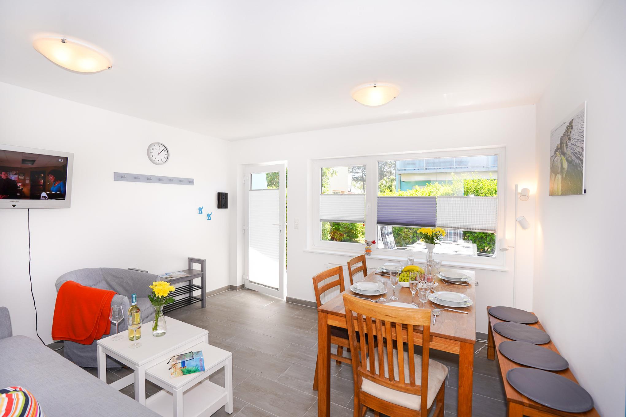 Tagsüber genießen Sie die Sonne am naheliegenden Strand oder auf Ihrer privaten Terrasse mit angrenzender Rasenfläche.