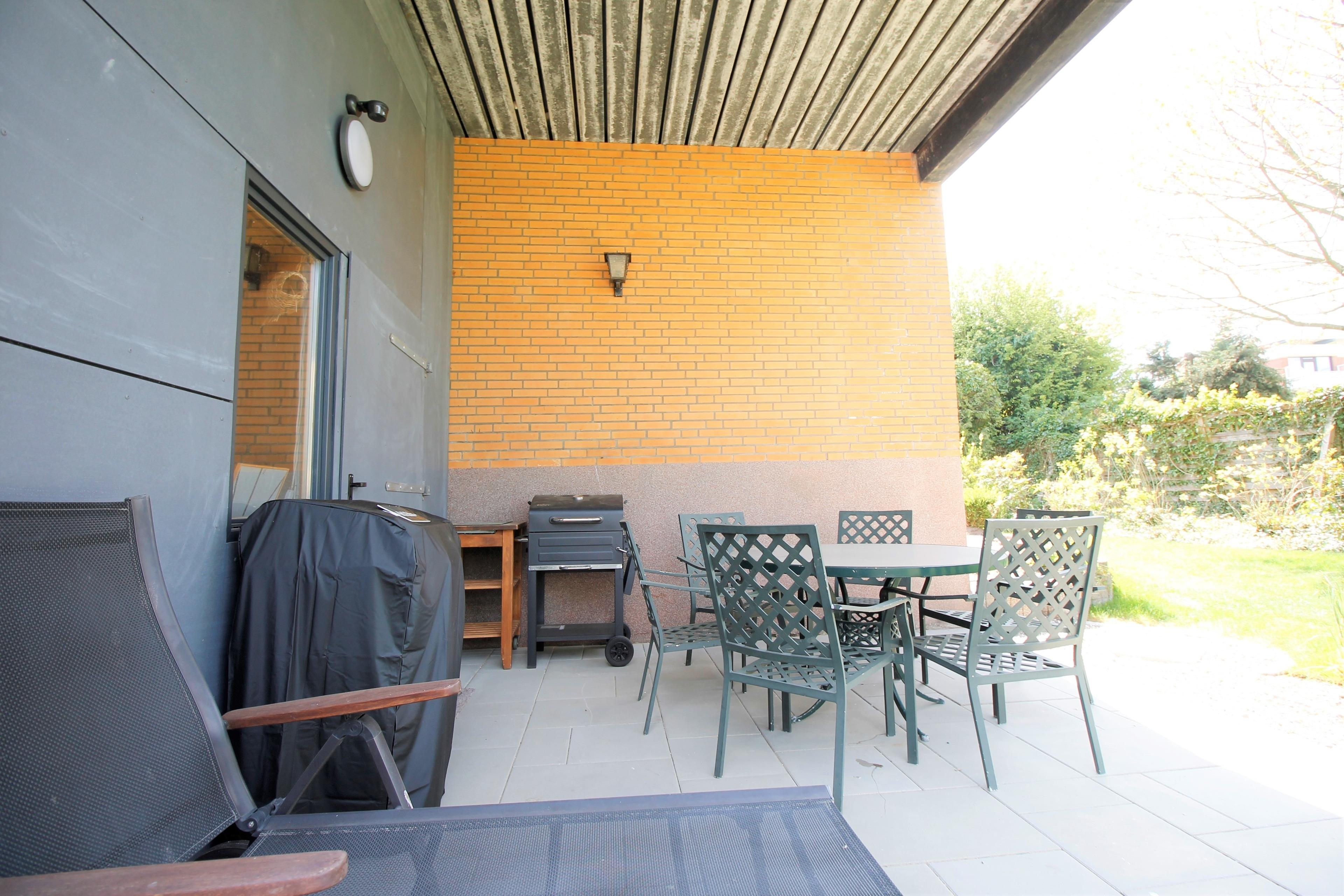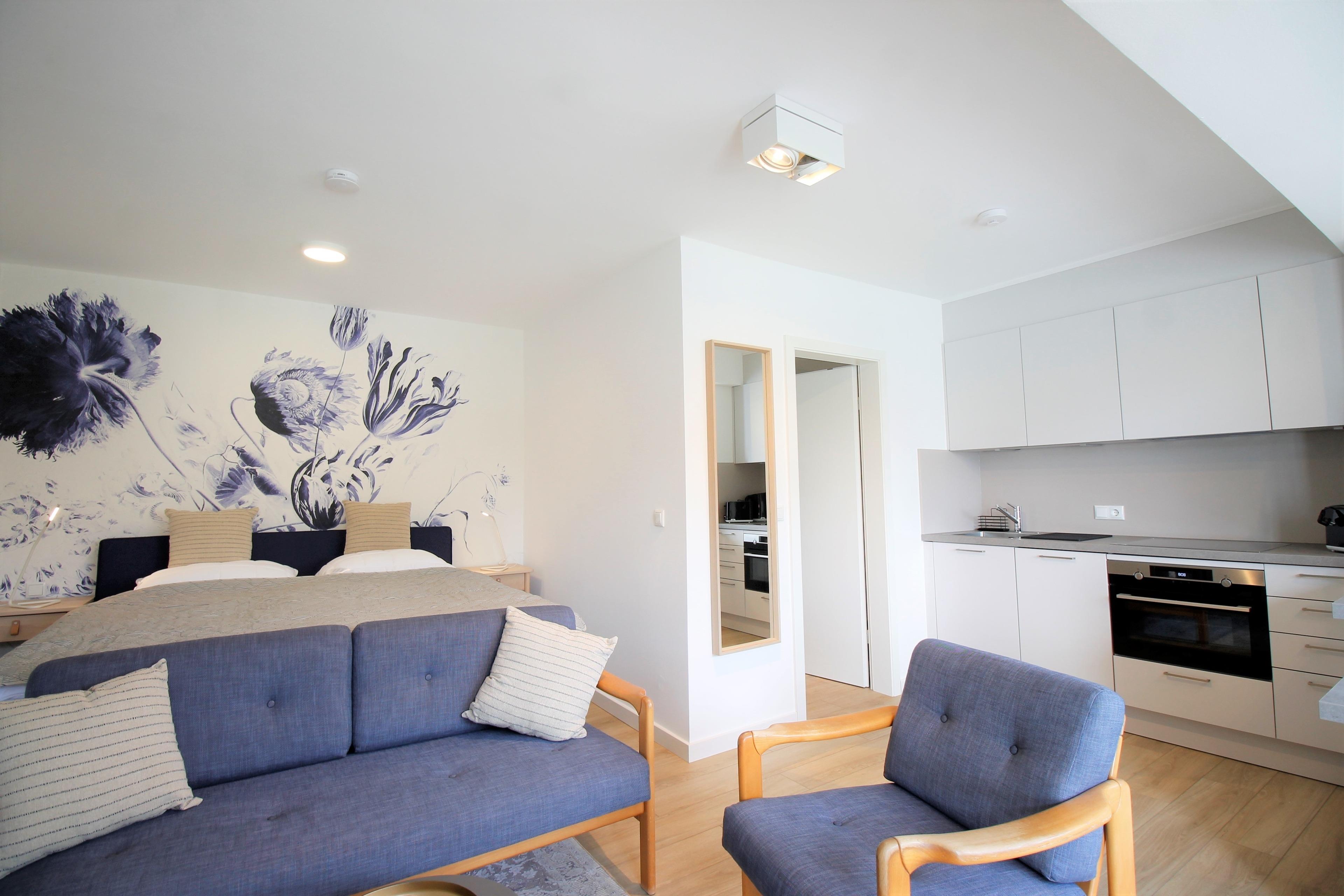 Die 2021/22 frisch sanierte Ferienwohnung besitzt eine eigene großzügige Terrasse (ca. 12 m). Der Schlafbereich bietet mit seinem Boxspringbett aus hochwertigen Taschenfedern optimalen Schlafkomfort. Durch eine flexible Halterung kann sowohl vom Bett als auch vom Sofa und Essbereich ferngesehen werden.