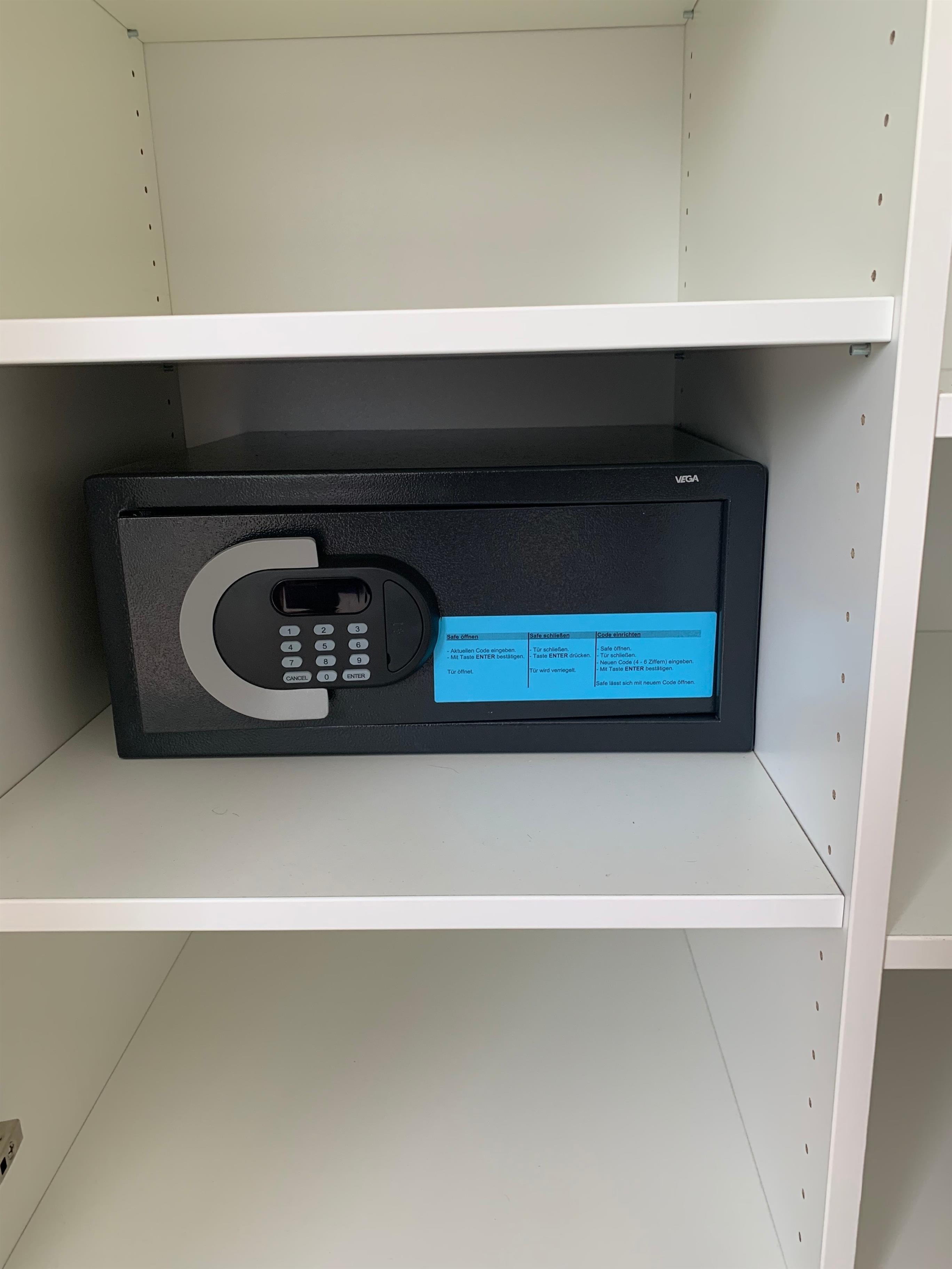 Die 2021/22 frisch sanierte Ferienwohnung ist außerdem mit einem eingebauten Tresor für Ihre Wertsachen ausgestattet.