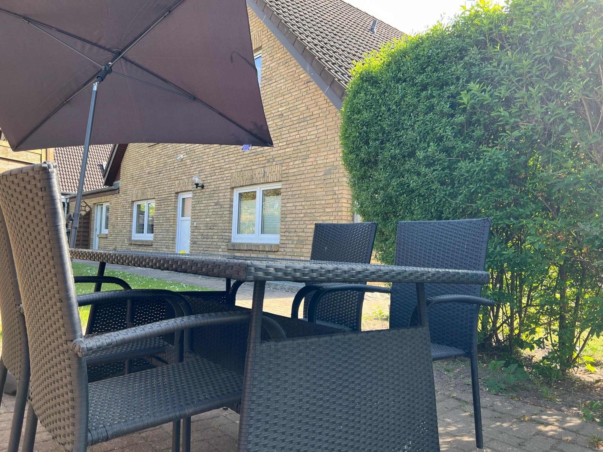 Auf der Rückseite des Appartementhauses befindet sich der Eingang zu der in 2022 neu gestalteten Erdgeschoss-Ferienwohnung, Lotte.