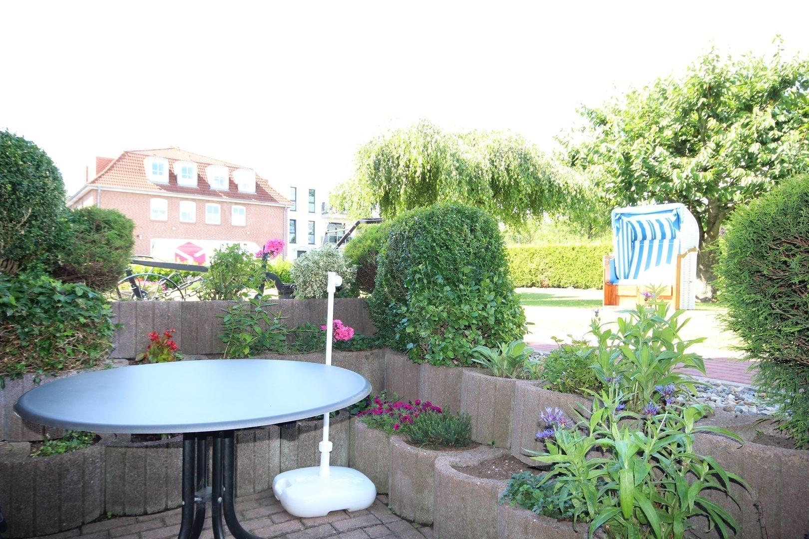 Das helle Wohn-/Esszimmer verfügt über eine gemütliche Couch, TV, CD-Radio, Essplatz und Zugang zur möblierten gemütlichen Sonnen- Terrasse.