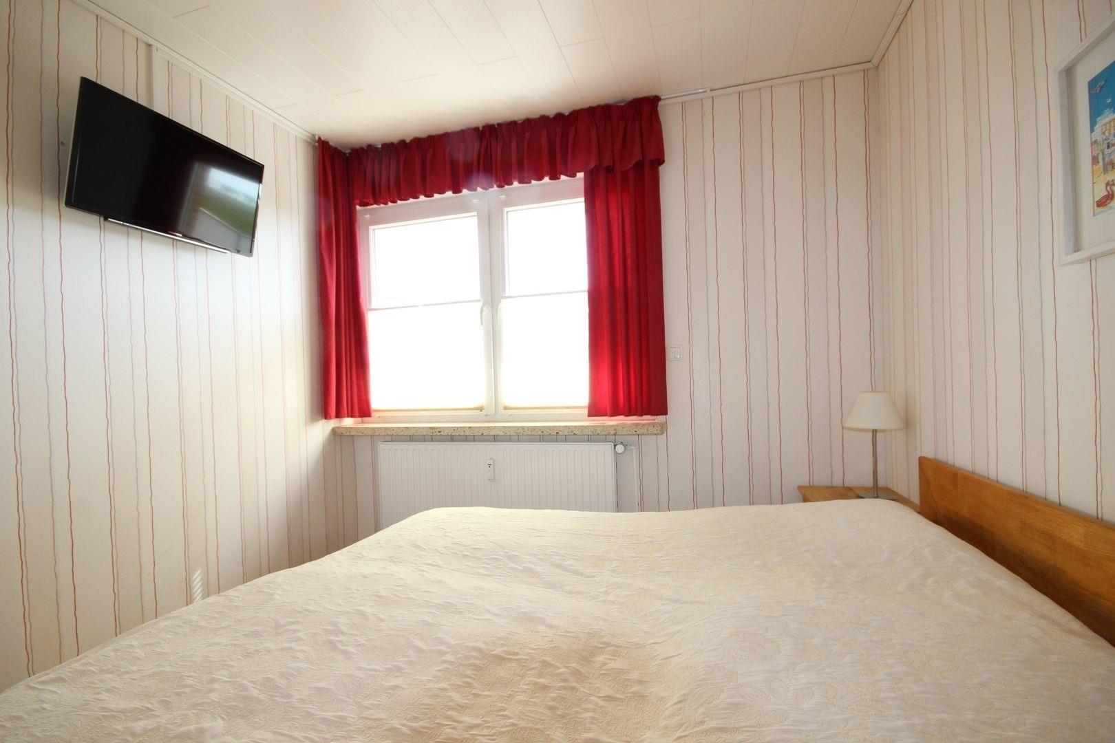 Das Schlafzimmer verfügt über ein komfortables Ehebett und einen Kleiderschrank.