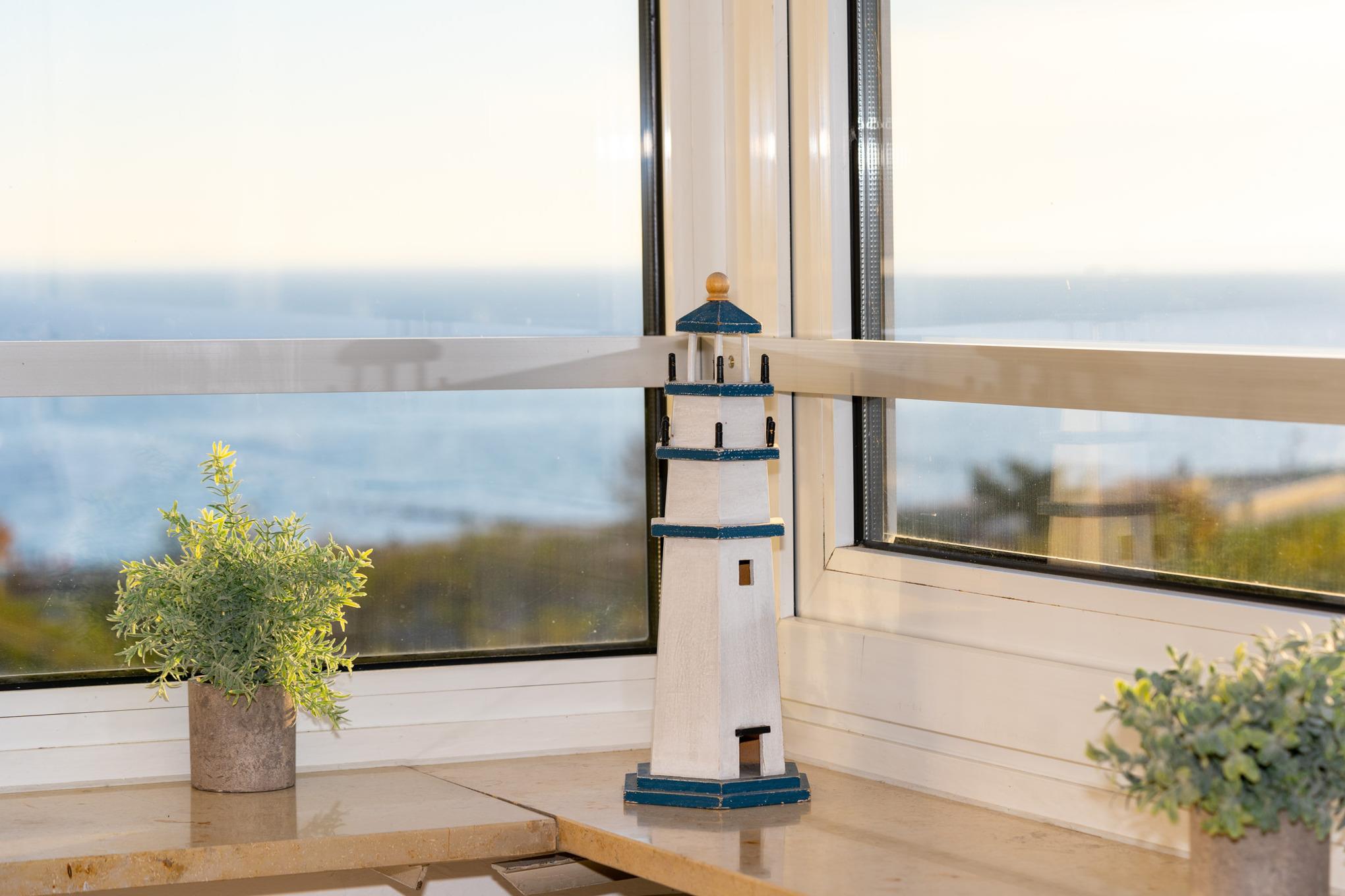 Entspannen Sie nach einem Tag am Strand auf Ihrem nach Süd-Westen ausgerichteten Balkon oder auf dem Sofa mit Blick auf die Ostsee durch die großen Fenster.