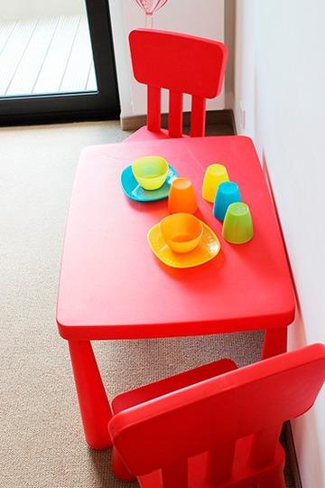 Ausstattung: ca. 45 m², 1 Kinderzimmer mit Etagenbett, 1 Elternschlafzimmer mit Doppelbett, Bad mit Regenkopfdusche und WC, Balkon mit Sitzmöbeln, voll ausgestattete Pantryküche mit 4 Herdplatten, Esstheke mit Sitzgelegenheiten, kostenloses W-LAN, Flat-TV, Waschmaschinen- und Trocknernutzung (gegen Gebühr).