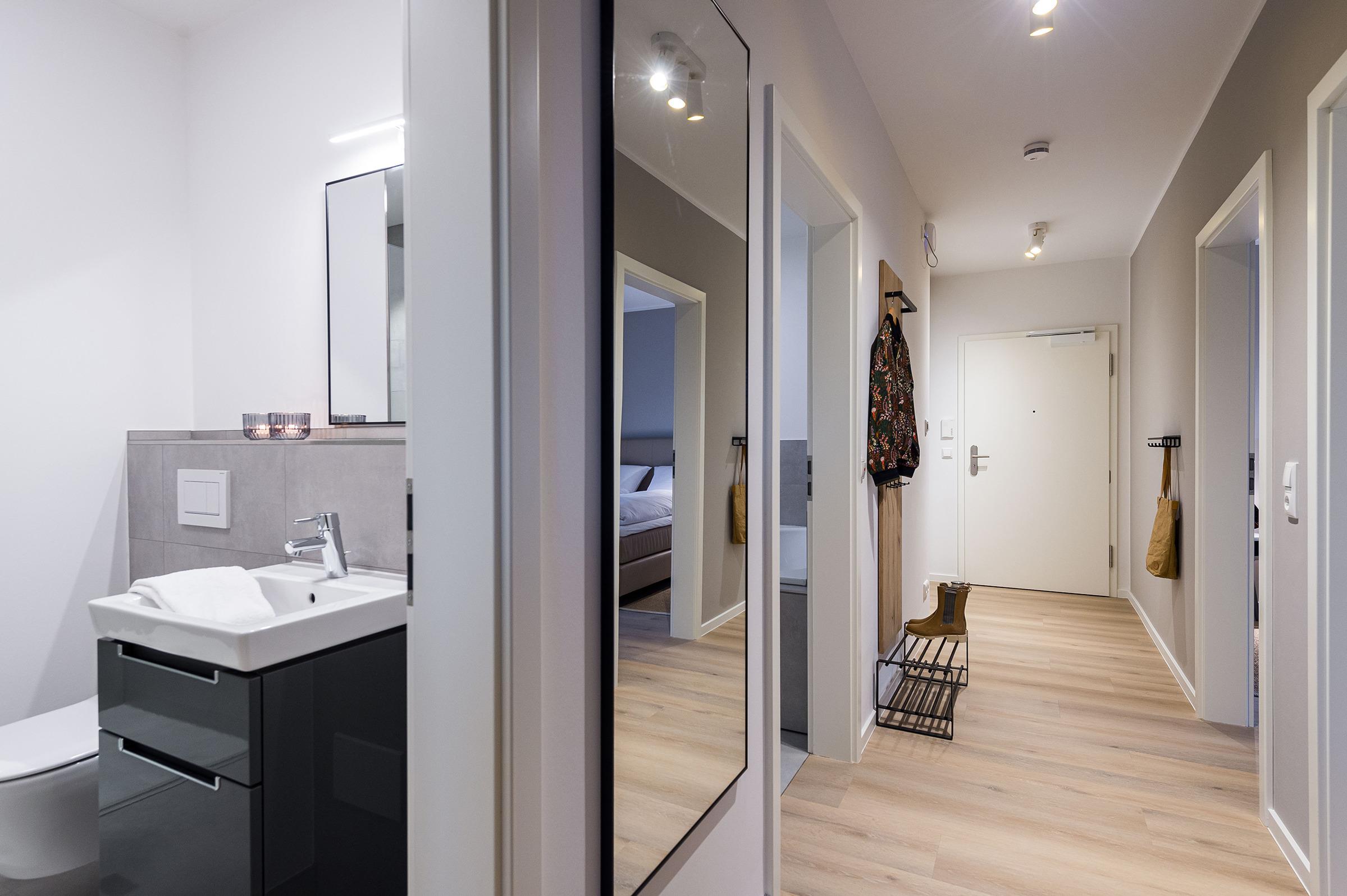 Kühlschrank inkl. Gefrierfach, eine Mikrowelle sowie einen Waschtrockner. Im Wohnbereich erwartet Sie ein 50-Zoll-Smart-TV sowie der Zugang zum Balkon. Der Balkon ist ebenfalls mit einem Esstisch ausgestattet und bietet einen herrlichen, frontalen Blick auf die Ostsee. Selbstverständlich bieten wir schnelles und kostenfreies WLAN sowie einen PKW-Stellplatz direkt am Haus. Auf den hauseigenen Parkplätzen stehen Ihnen E-Auto-Ladegeräte (Wallboxen) zur Verfügung (gegen Gebühr). Aufgrund der Allergiker gerechten Ausstattung sind Haustiere nicht erlaubt.