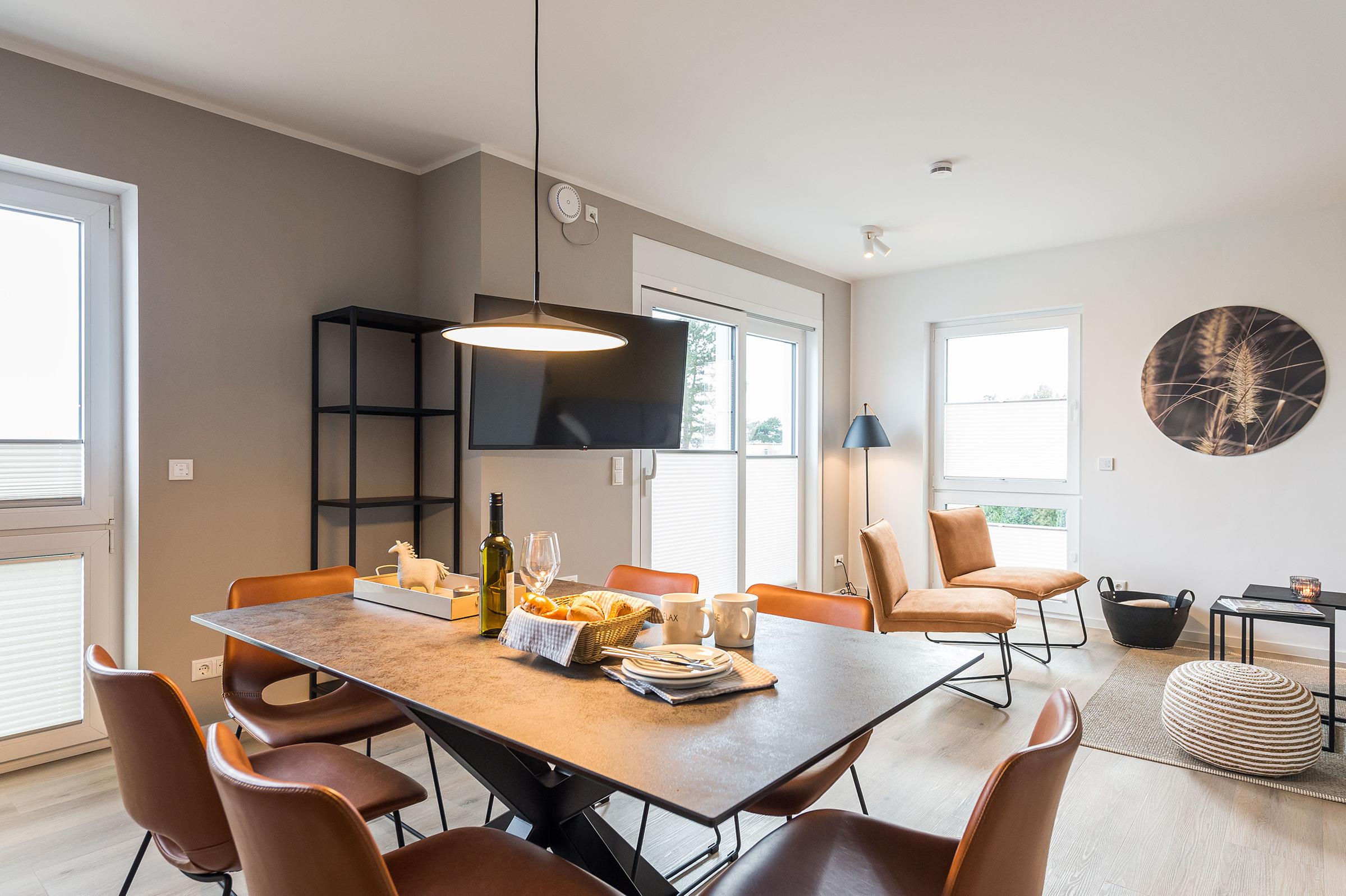 Sie ist für bis zu 4 Personen buchbar (2 Schlafzimmer mit Doppelbetten 180 x 200 cm) (der angegebene Preis bezieht sich immer auf 2 Erwachsene und 2 Kinder, extra Personen können ggf. auf Anfrage dazu gebucht werden) und verfügt über eine gehobene 5-Sterne-Ausstattung: 2 Badezimmer, 1 Sauna, 1 Whirlwanne sowie 1 Balkon (frontaler Meerblick). Die Küche ist komplett ausgestattet und bietet einen großen Esstisch für bis zu 6 Personen. Zudem gibt es einen Geschirrspüler, einen Kühlschrank inkl. Gefrierfach, eine Mikrowelle sowie einen Waschtrockner. Im Wohnbereich erwartet Sie ein 50-Zoll-Smart-TV sowie der Zugang zum Balkon. Der Balkon ist ebenfalls mit einem Esstisch ausgestattet und bietet einen herrlichen, frontalen Blick auf die Ostsee. Selbstverständlich bieten wir schnelles und kostenfreies WLAN sowie einen PKW-Stellplatz direkt am Haus. Auf den hauseigenen Parkplätzen stehen Ihnen E-Auto-Ladegeräte (Wallboxen) zur Verfügung (gegen Gebühr). Aufgrund der Allergiker gerechten Ausstattung sind Haustiere nicht erlaubt.