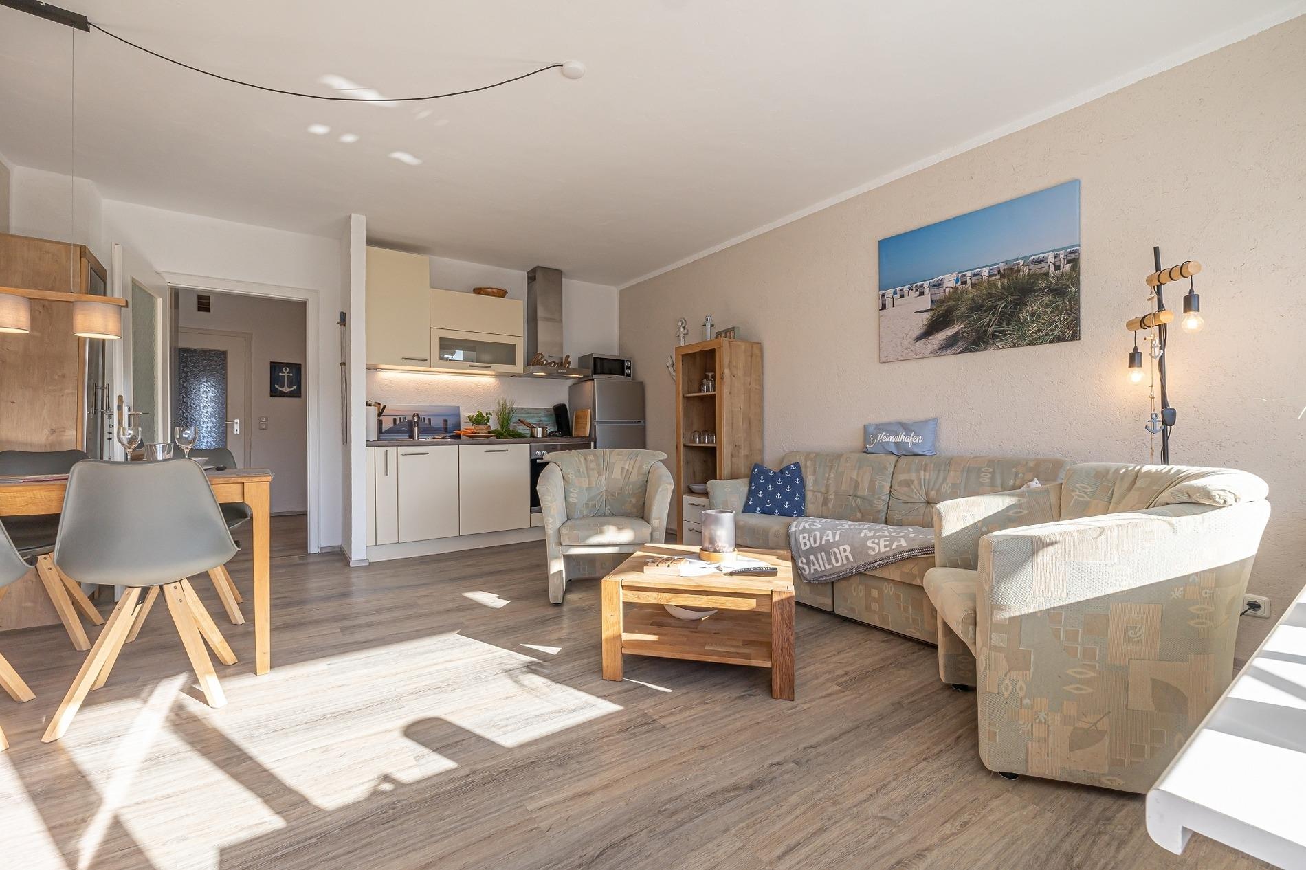 Urlaub im Ostseebad Grömitz? Dann buchen Sie jetzt diese gemütliche Ferienwohnung, welche sich nur 4 Gehminuten vom Strand entfernt befindet. Genießen Sie Ihren Urlaub auf 50 m² mit ausreichend Platz für bis zu 4 Personen.