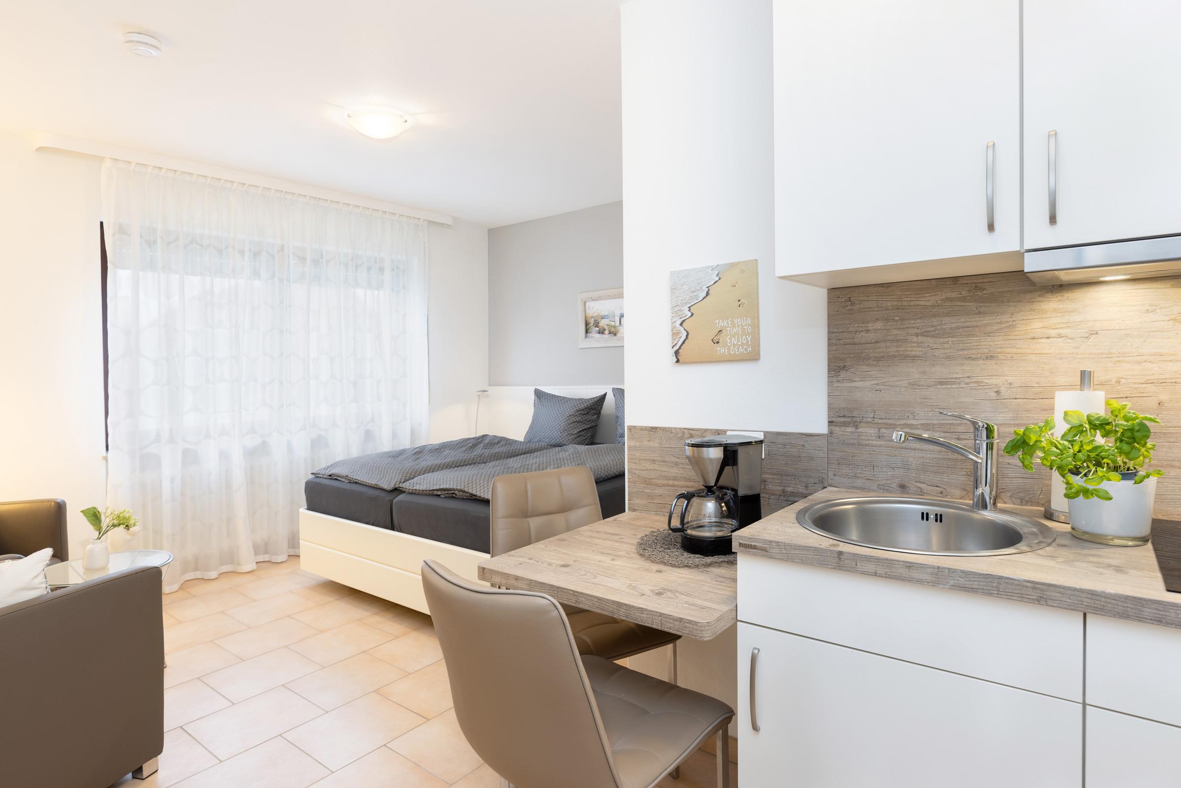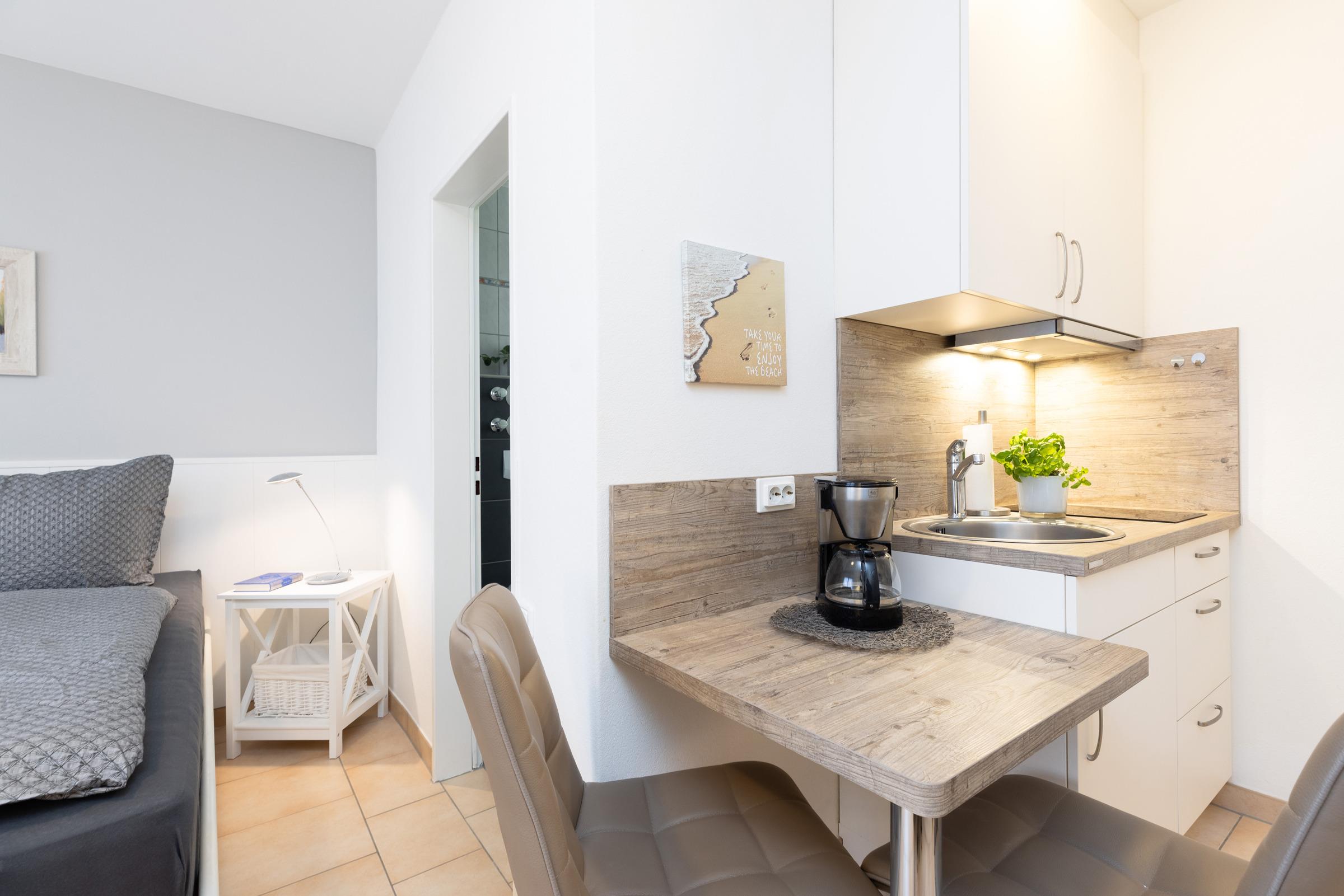 In diesem kompakten, clever aufgeteilten Mikro-Appartement im Hochparterre kannst du ganzjährig strandnah deinen Ostsee-Urlaub verbringen.