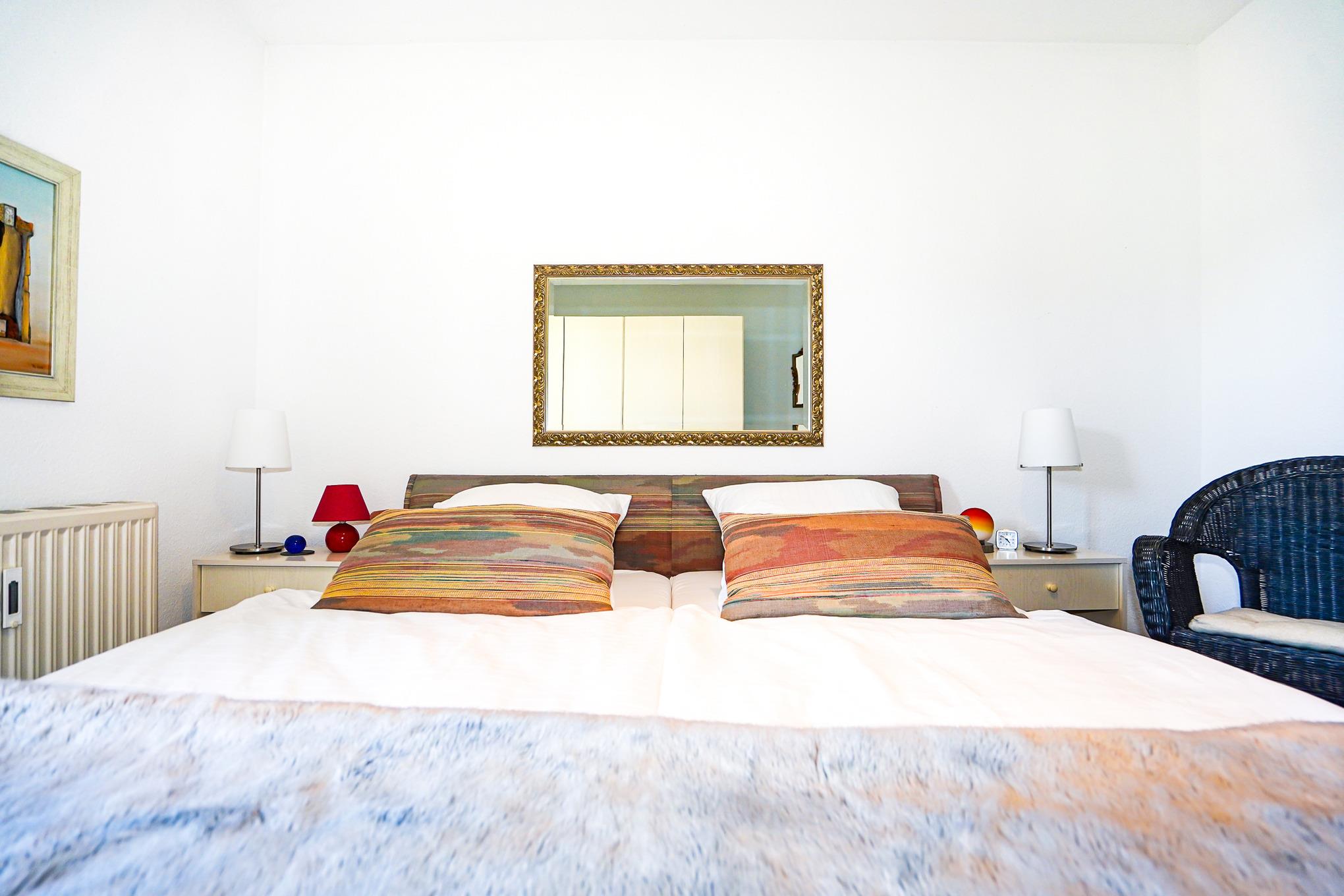 Diese 2-Zimmer-Ferienwohnung bietet ausreichend Platz für 2 Personen. Das separate Schlafzimmer ist mit einem bequemen Doppelbett und einem großen Kleiderschrank ausgestattet.