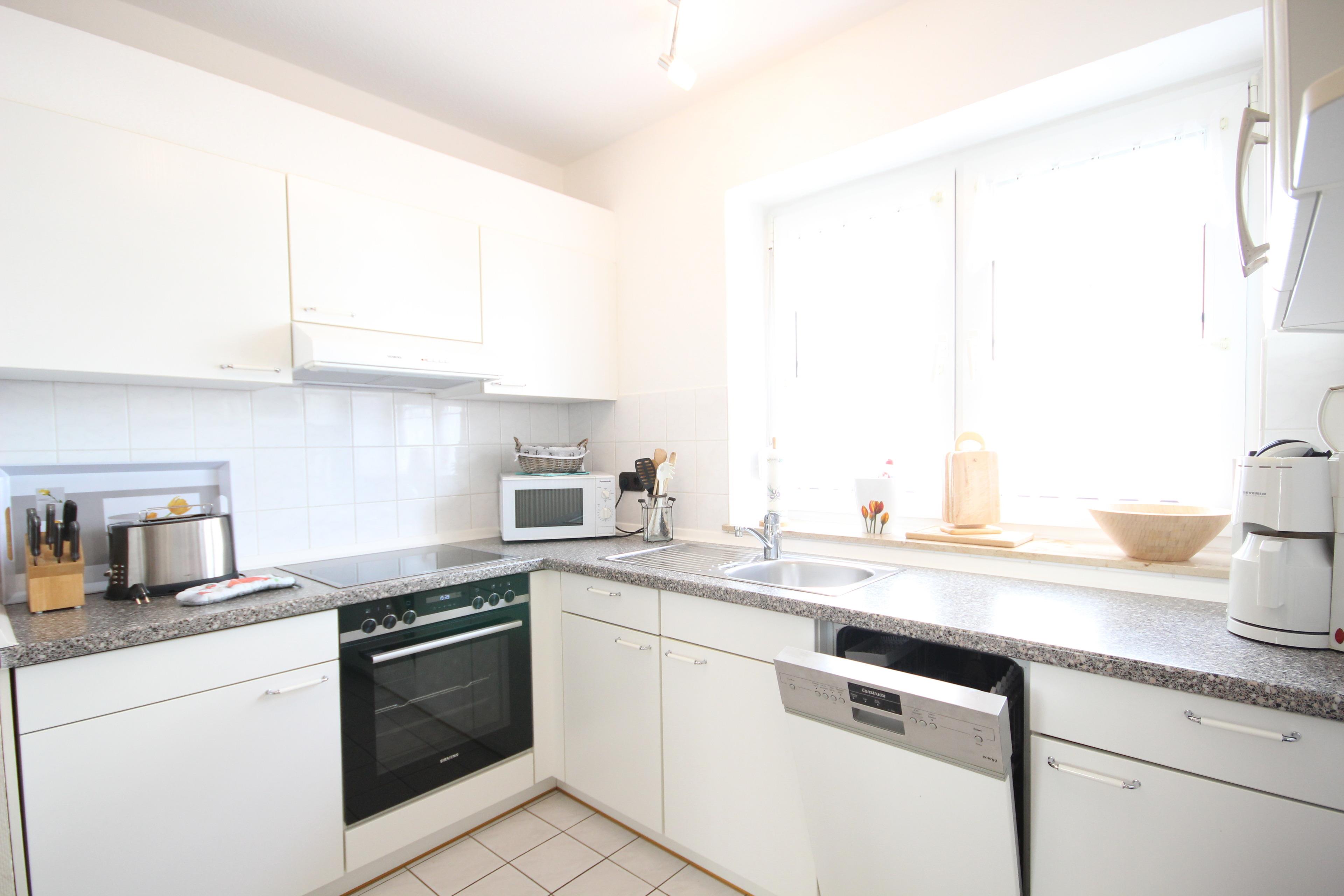 Die Küche ist mit Backofen, Herd, Mikrowelle, Kühlschrank, Geschirrspüler & allen üblichen Küchengeräten sehr gut ausgestattet.