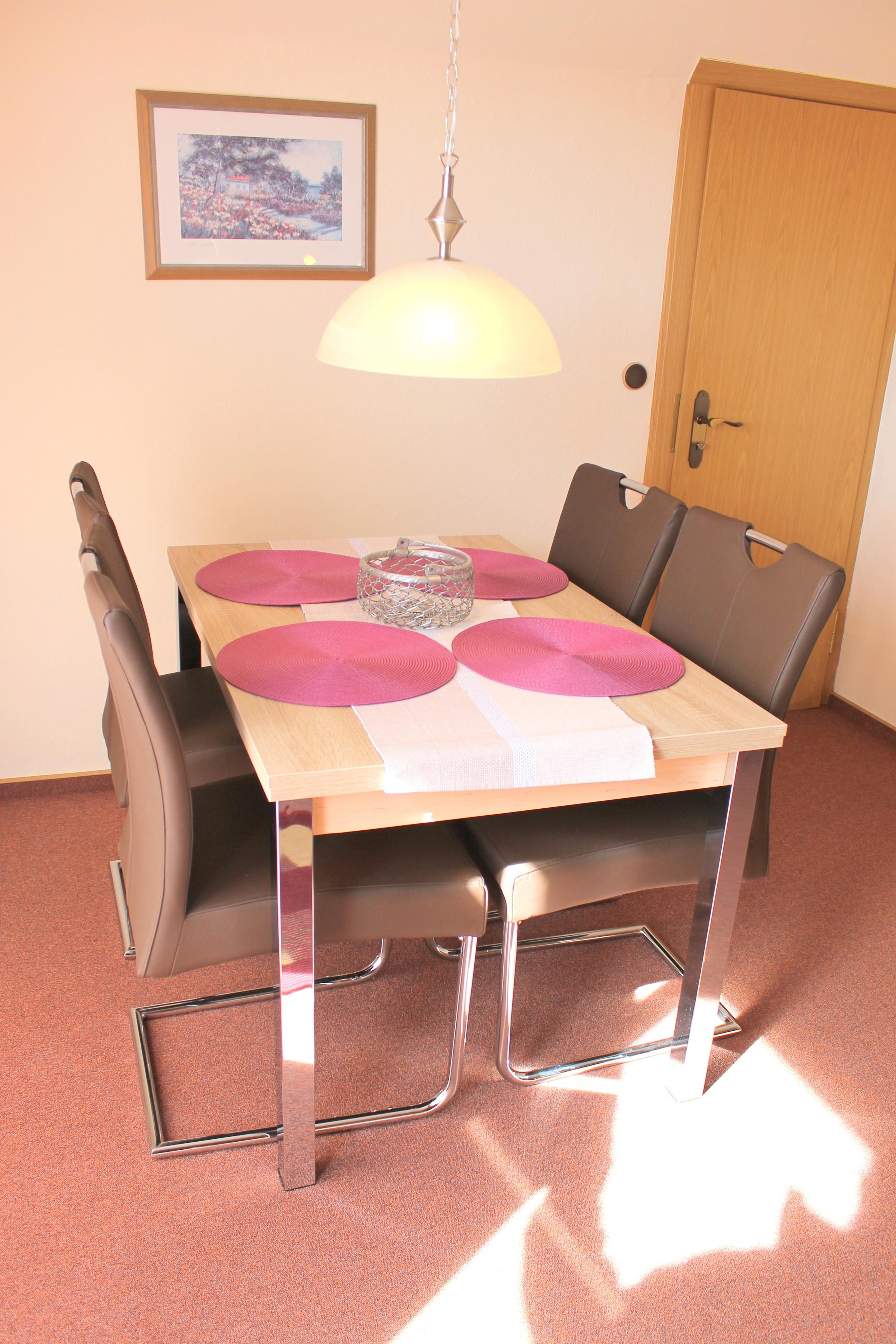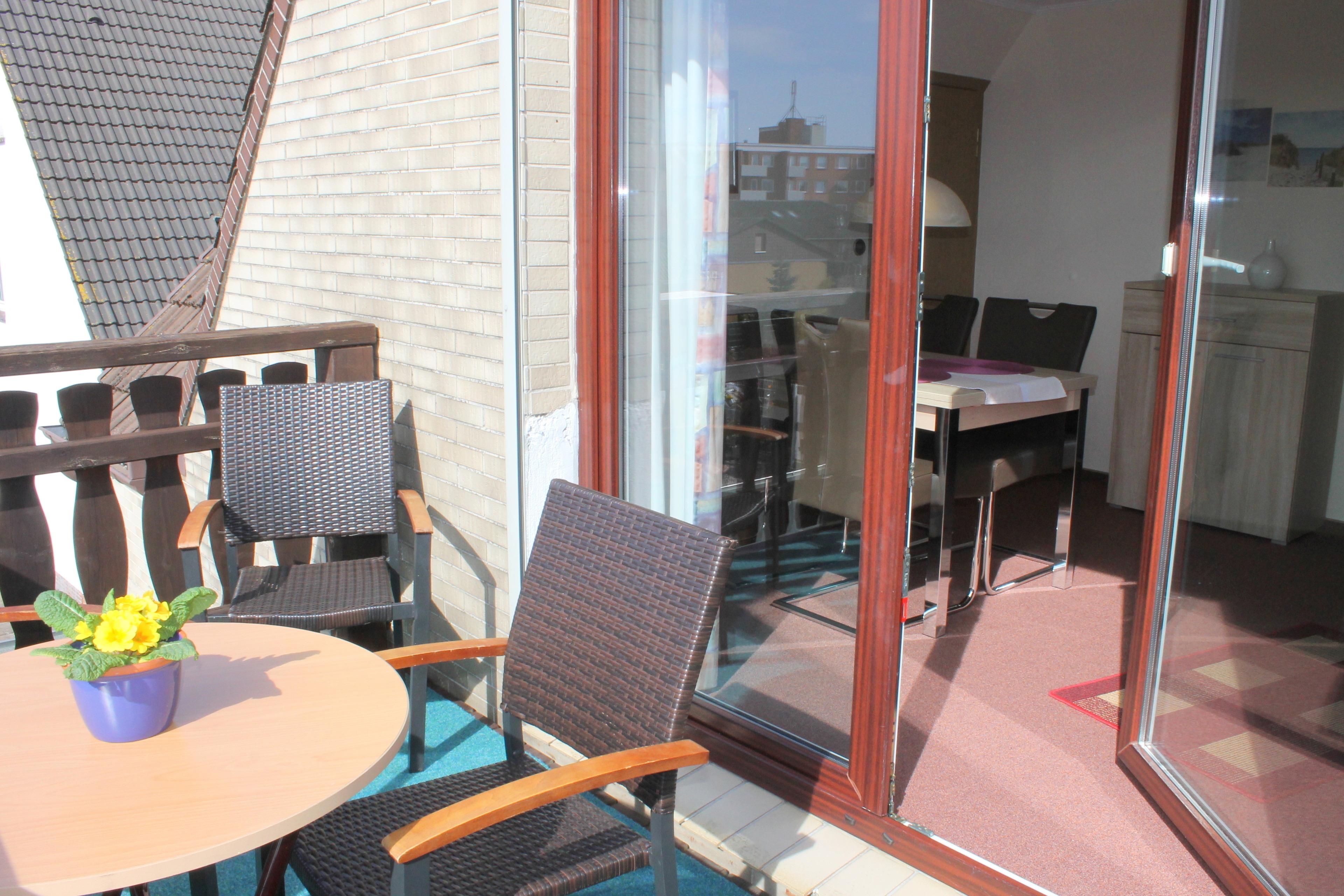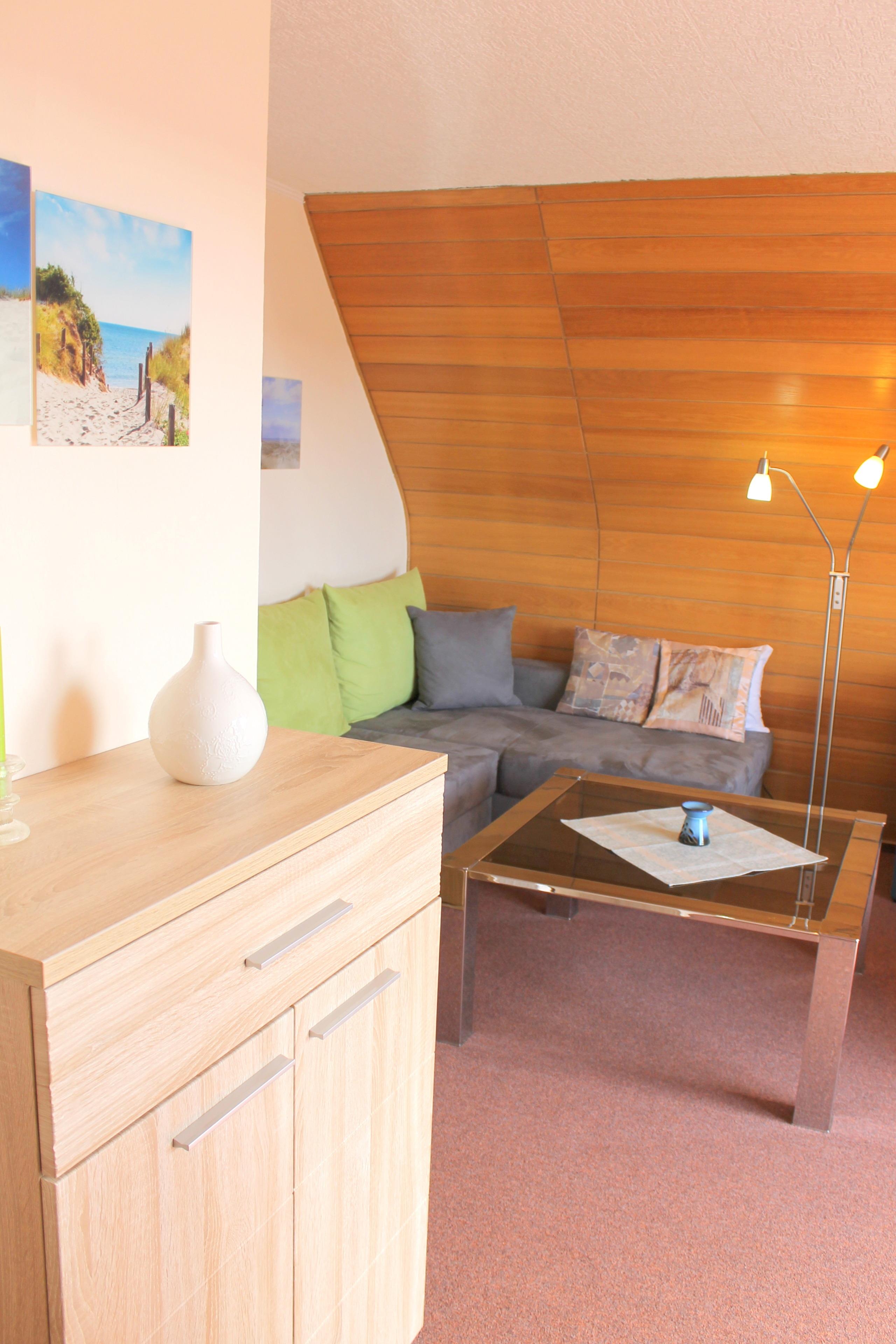 Das Wohnzimmer ist mit gemütlicher Sitzecke, TV und einem Essplatz für vier Personen versehen - von hier aus haben Sie Zugang zum möblierten Südwest Balkon sowie zur Küche. Die kleine Küche ist u.a. mit Backofen, 4-Platten-Herd und Kaffeemaschine ausgestattet. Desweiteren sind zwei separate Schlafzimmer vorhanden, eins ist mit einem Doppelbett 1,90 x 1,80 m(getrennte Matratzen) und Kleiderschrank versehen und eins mit zwei Einzelbetten sowie einem Waschbecken. Das Tageslicht-Badezimmer mit Dusche / WC ist auf zwei Räume aufgeteilt - Waschbecken und Dusche in einem und das WC in einem kleinen separaten Raum, der vom Badezimmer abgeht - beide Räume sind mit Fenster ausgestattet.