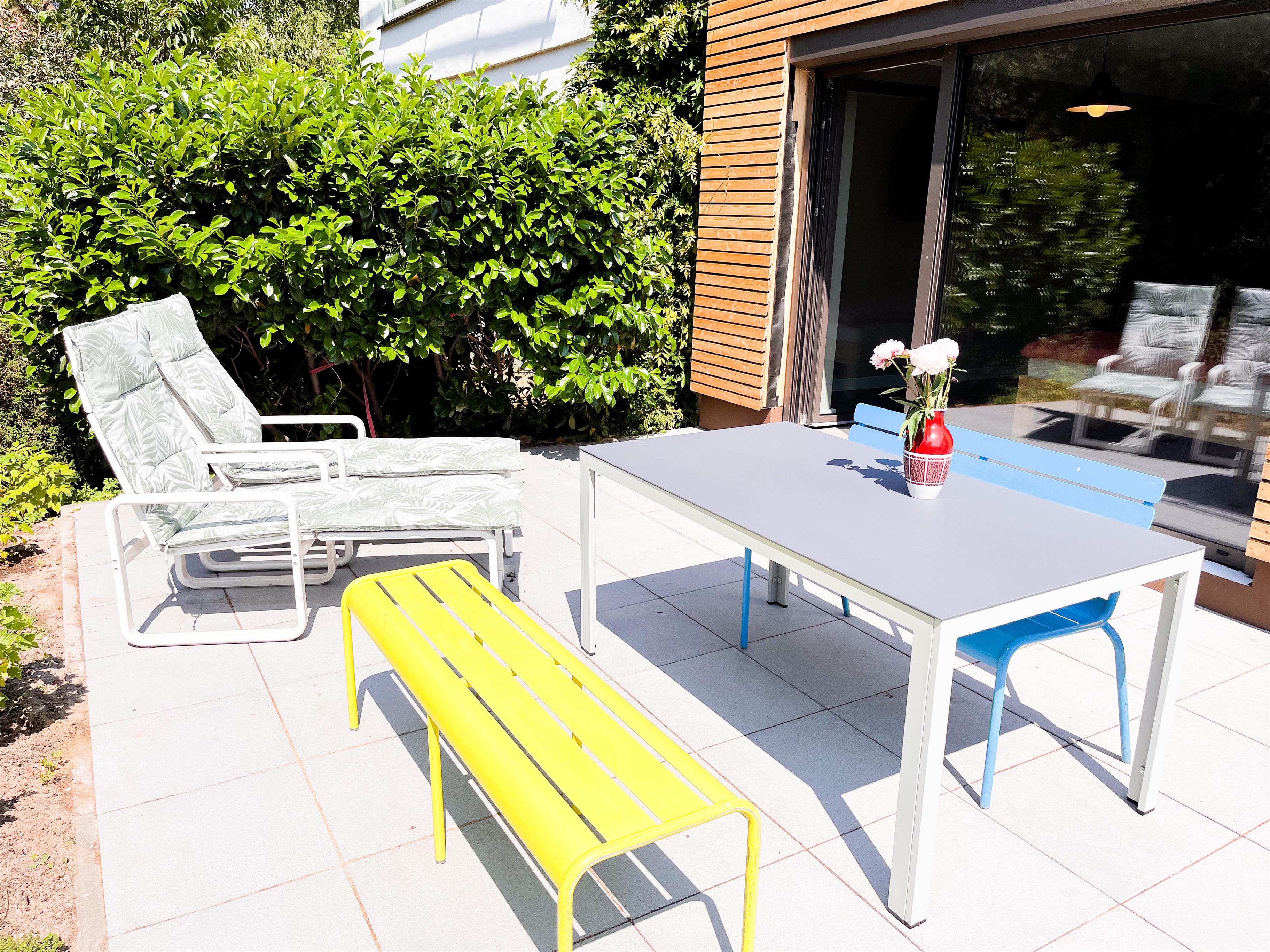 In ruhiger und doch sehr zentraler Lage befindet sich diese top ausgestattete und im Industrie-Style eingerichtete 2-Zi.-Wohnung mit Terrasse. Größe ca. 46m², für bis zu 4 Personen.