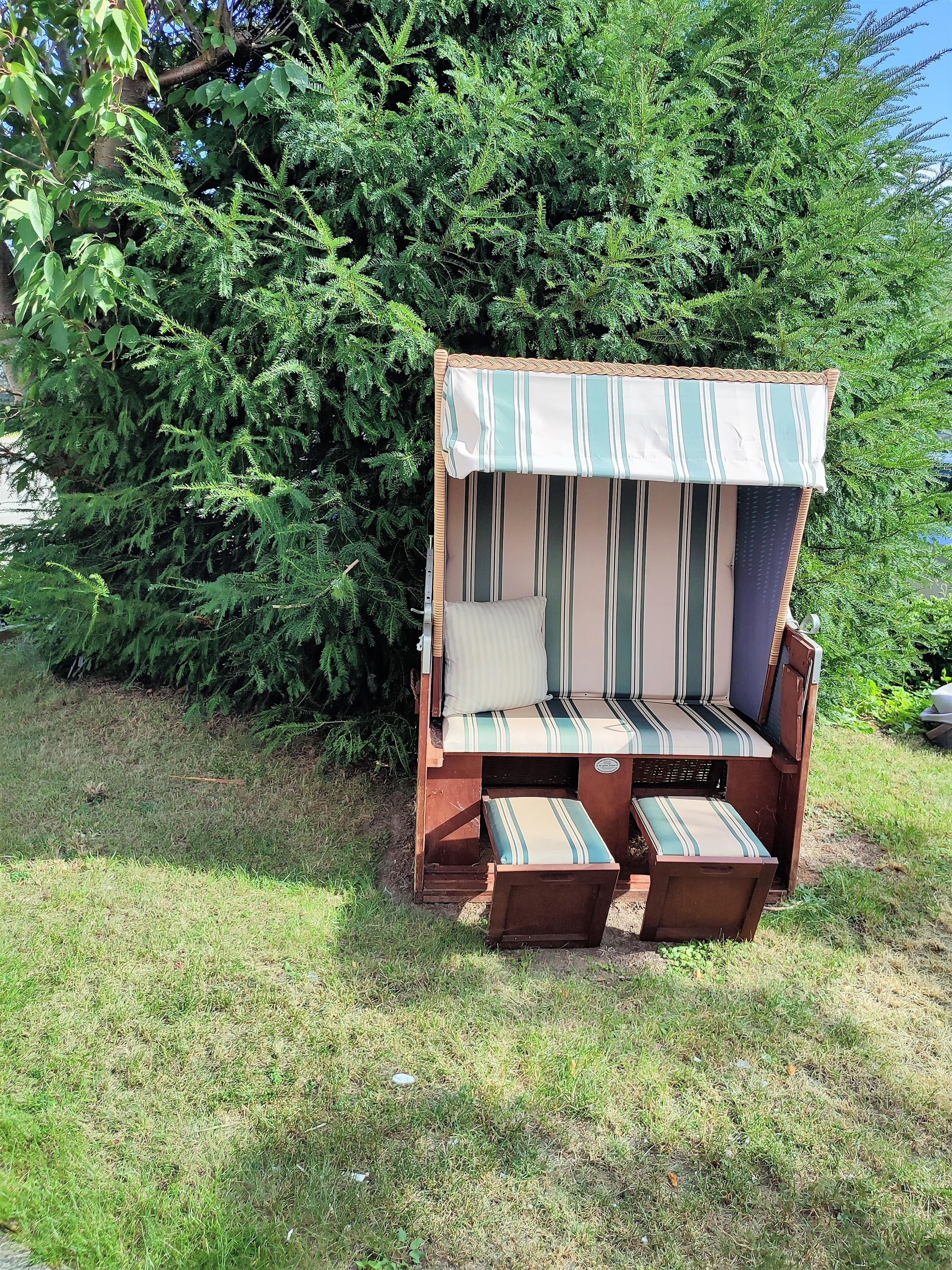 Ein Zuviel an Sonne hält das Sonnensegel ab - oder nutzen Sie den bereitgestellten Strandkorb.