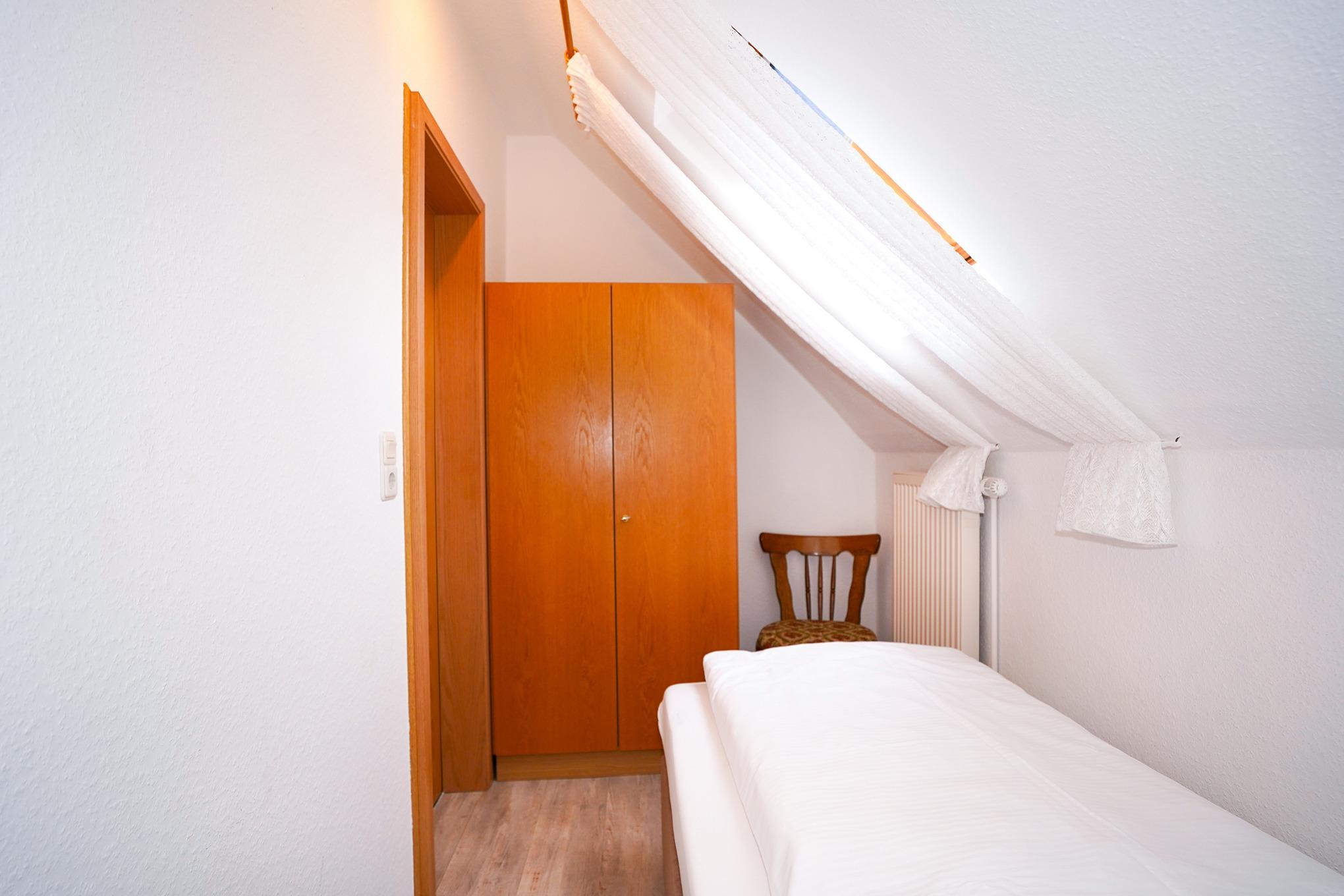 Das helle und freundliche Schlafzimmer überzeugt durch sein bequemes Bett mit Einzelmatratzen (90x200cm), einem Kleiderschrank und zwei Sesseln. Ein weiteres kleines Schlafzimmer bietet Ihnen ein zusätzliches Einzelbett (90x200cm) sowie einen Kleiderschrank. Alle Fenster der Wohnung lassen sich durch Außenjalousien abdunkeln.