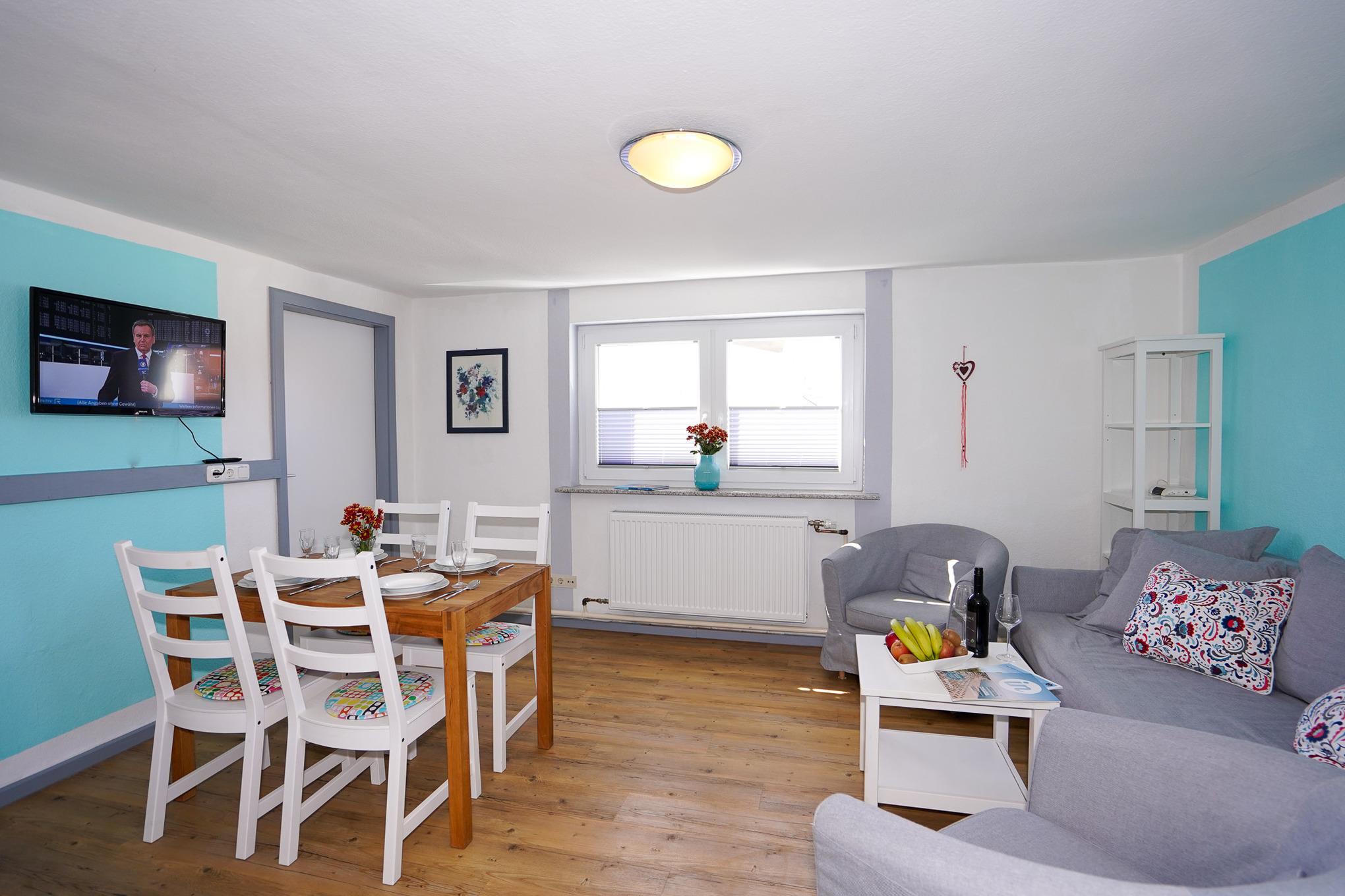 Modern eingerichtete Ferienwohnung für bis zu 4 Personen in ruhiger zentraler Lage direkt am Deich -nur 100 m zum Strand!