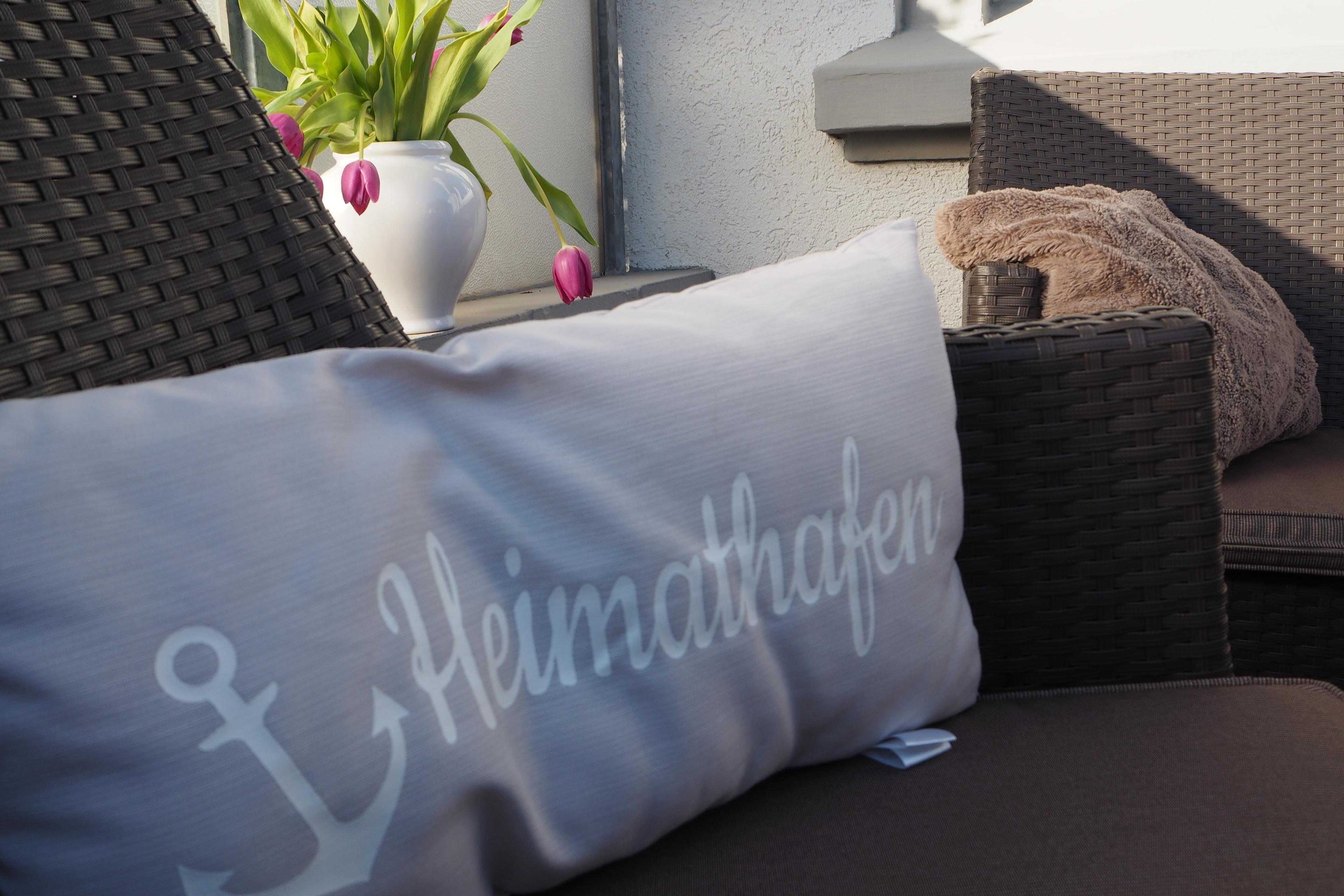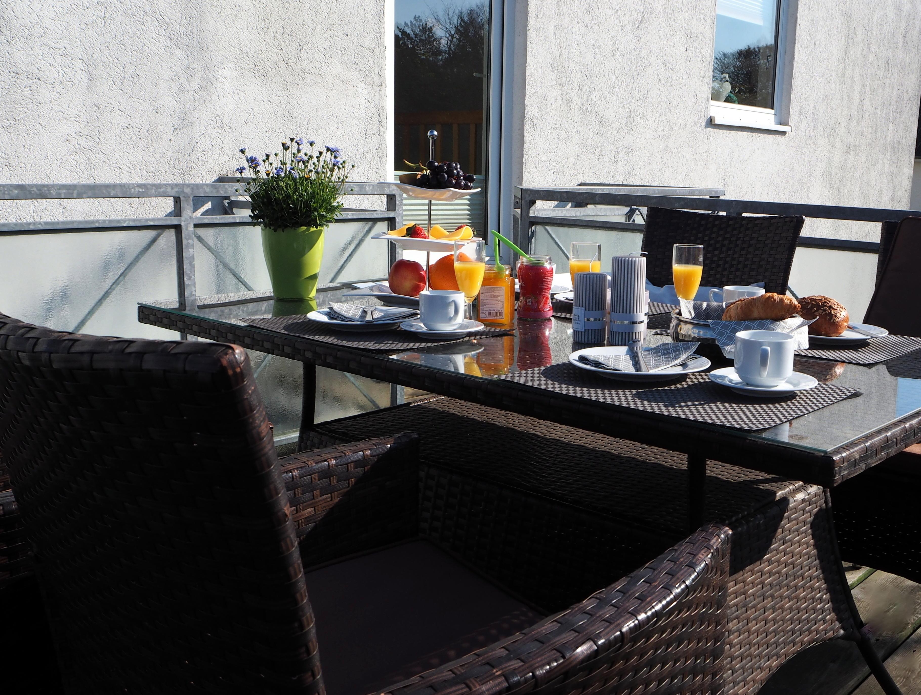 1 Balkon mit gemütlichen Polyrattanmöbeln zur Südwest-Seite.