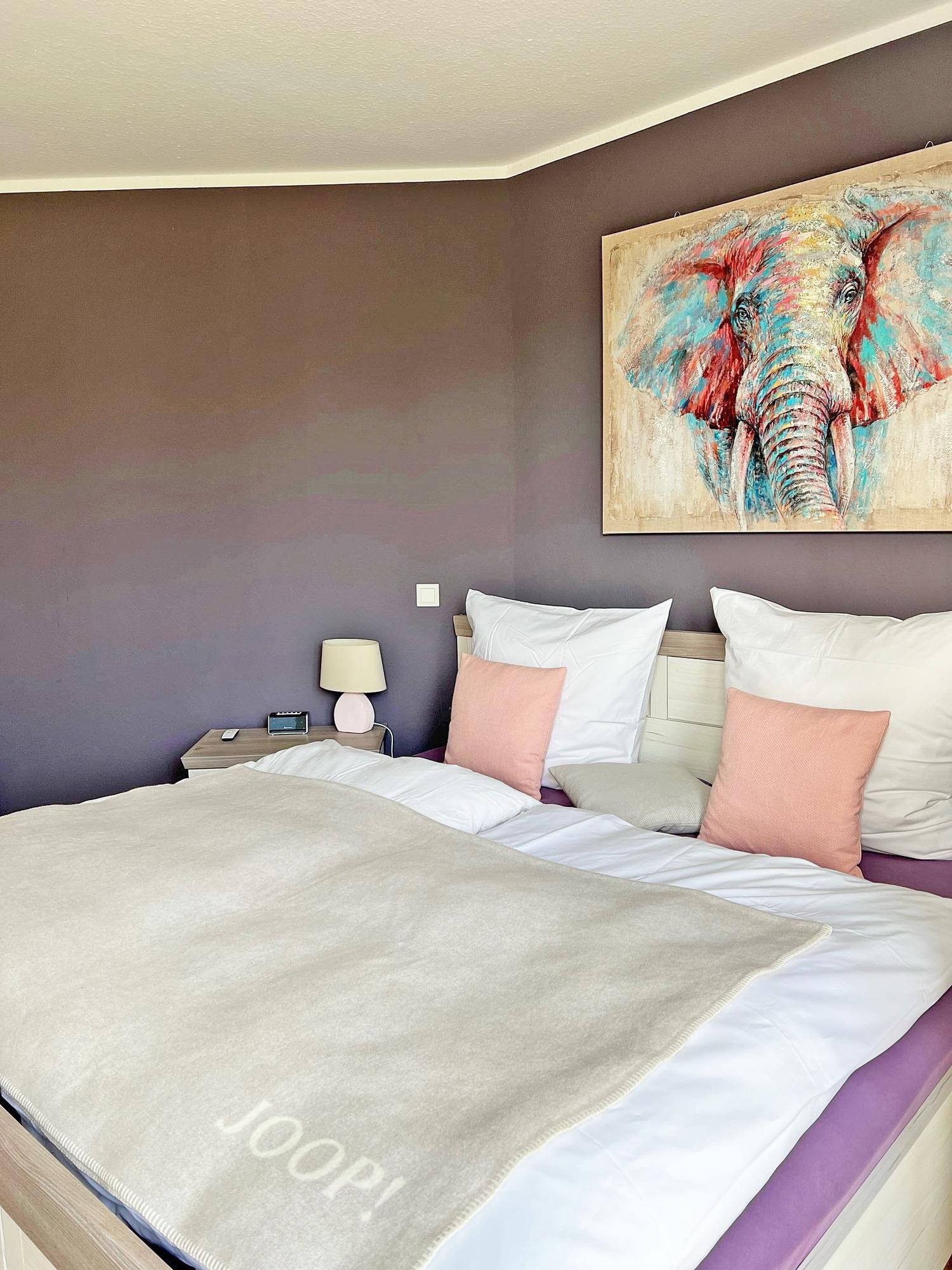Das Schlafzimmer ist mit einem komfortablen Doppelbett (Liegefläche 2x90x200; Matratzen neu aus 2023) und einem geräumigen Kleiderschrank für Ihre Urlaubsgarderobe ausgestattet. Die 2023 eingebauten elektrischen Außenjalousien lassen Sie zur Ruhe kommen und abschalten.