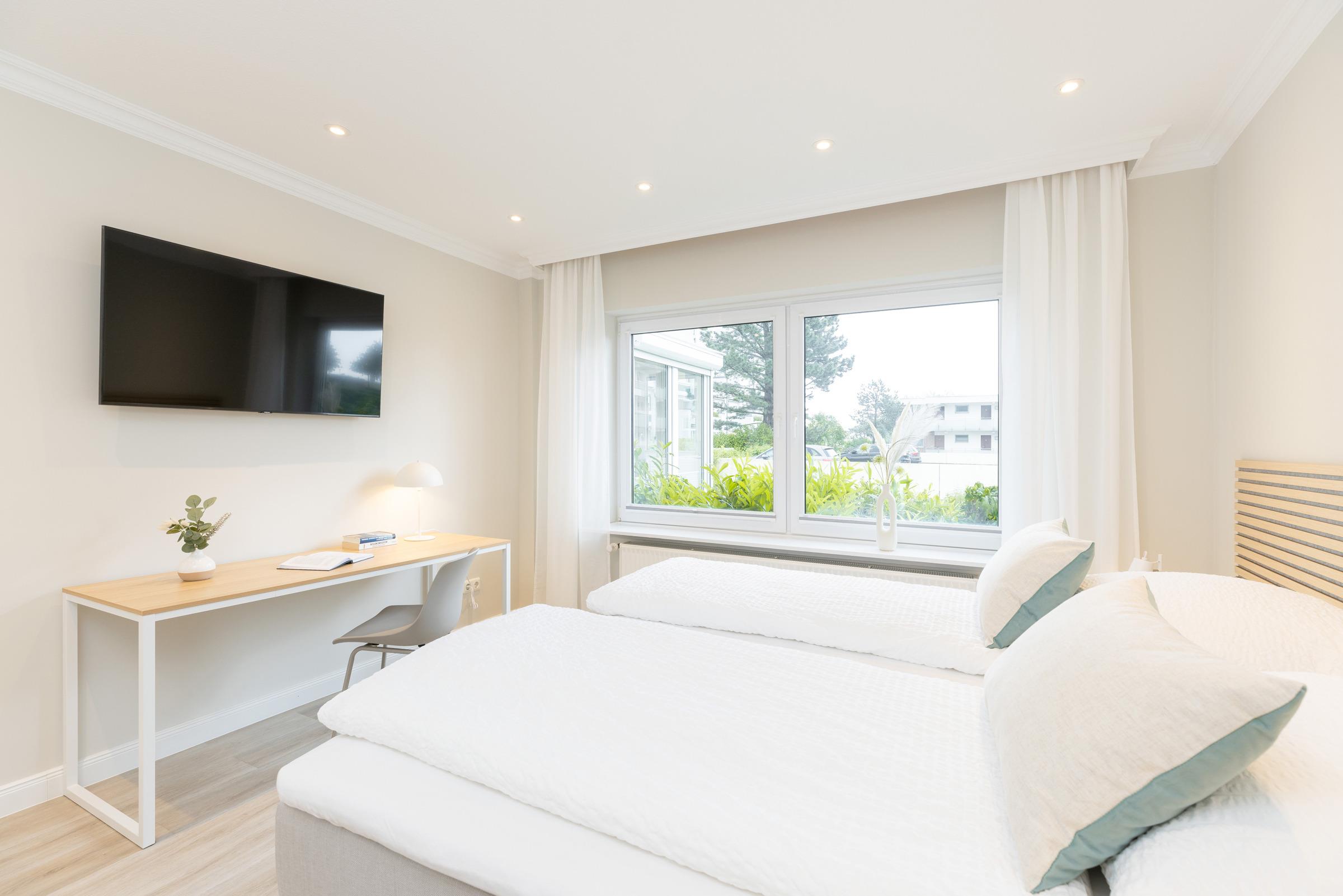 - Großzügiges Wohnzimmer und 2 besonders geräumige Schlafräume: Jedes Zimmer ist mit einem großen Smart-TV ausgestattet