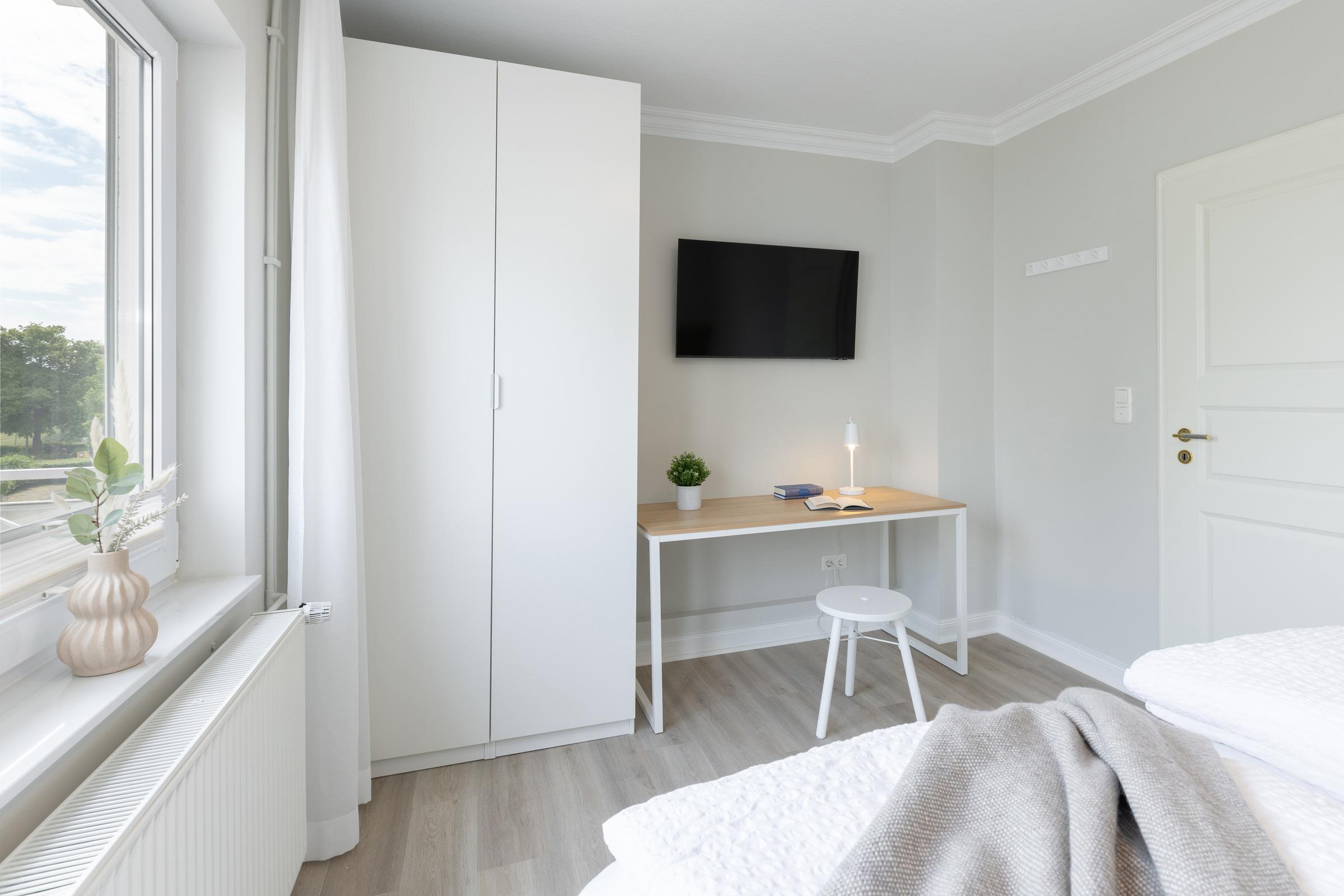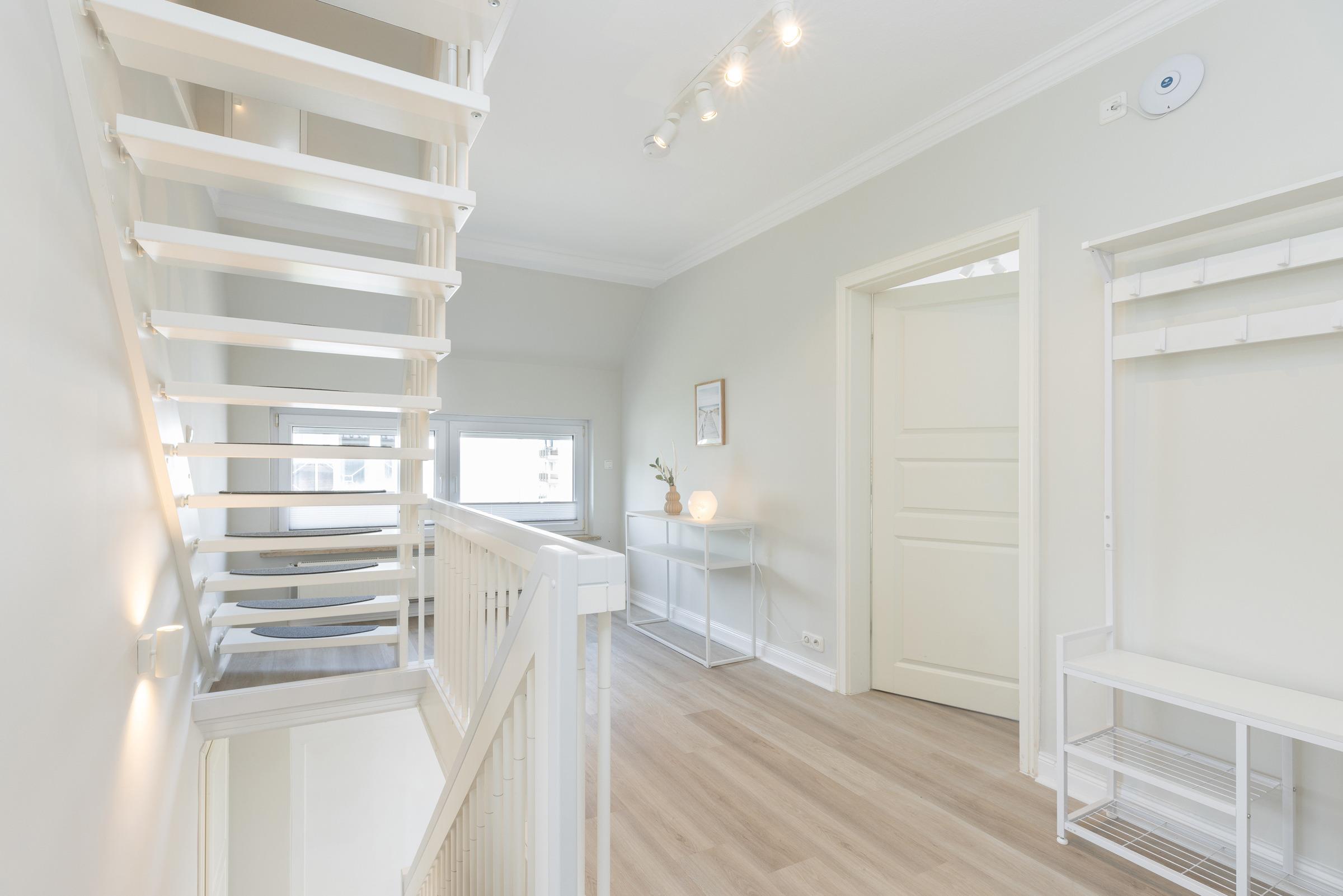 Diese elegante Unterkunft erstreckt sich über das Ober- und Dachgeschoss, bietet auf 113 Quadratmetern Platz für bis zu 6 Personen (plus Baby) und verfügt über 3 Schlafräume, 2 große Sonnen-Balkone mit Meerblick, elektrische Rollläden, Smart-TVs, Boxspringbetten, zwei Dusch-Bäder (eins mit zusätzlicher Badewanne), High-Speed-WLAN und eine große Komfort-Küche. Bettwäsche & Handtücher sind inklusive.