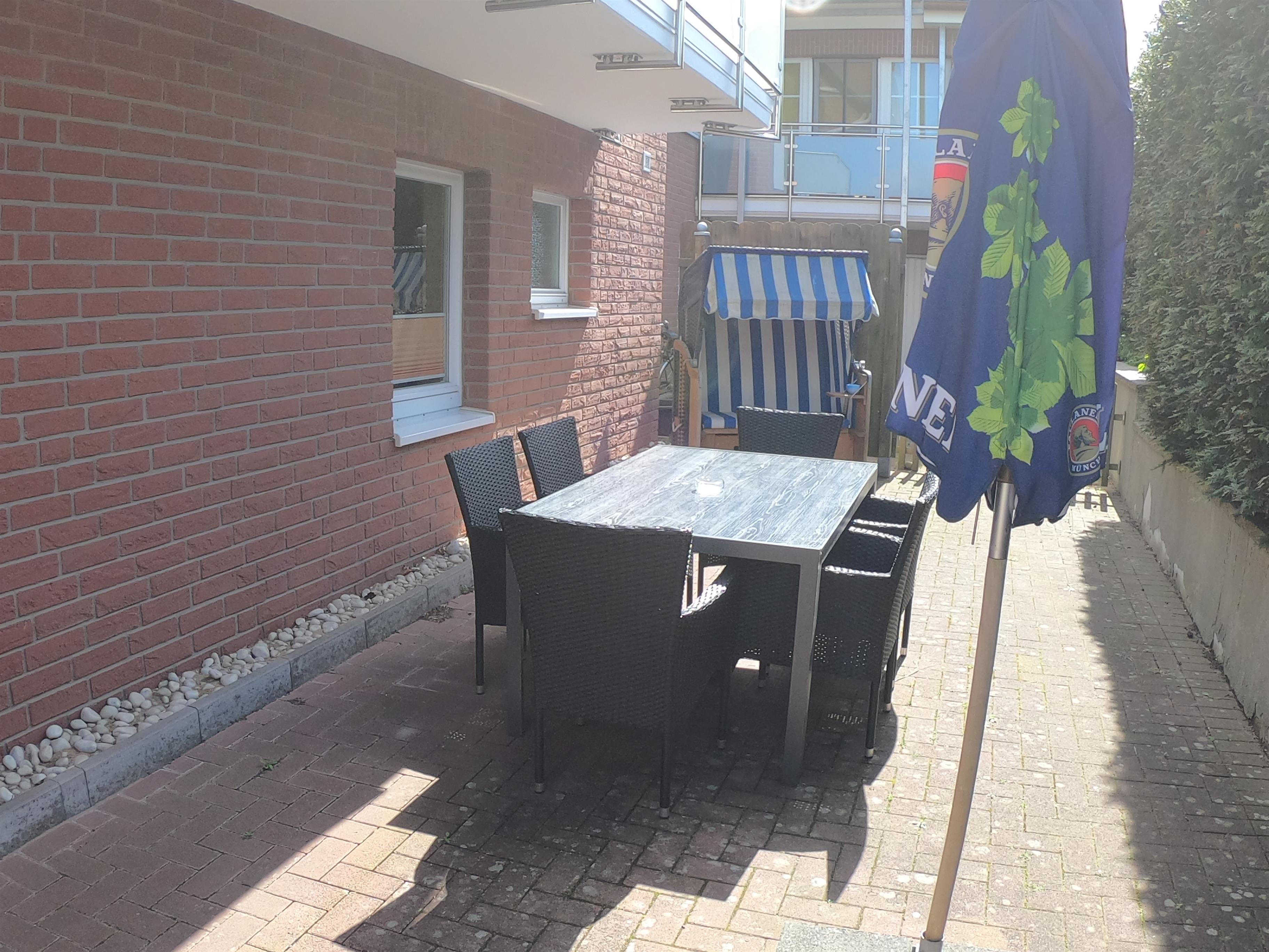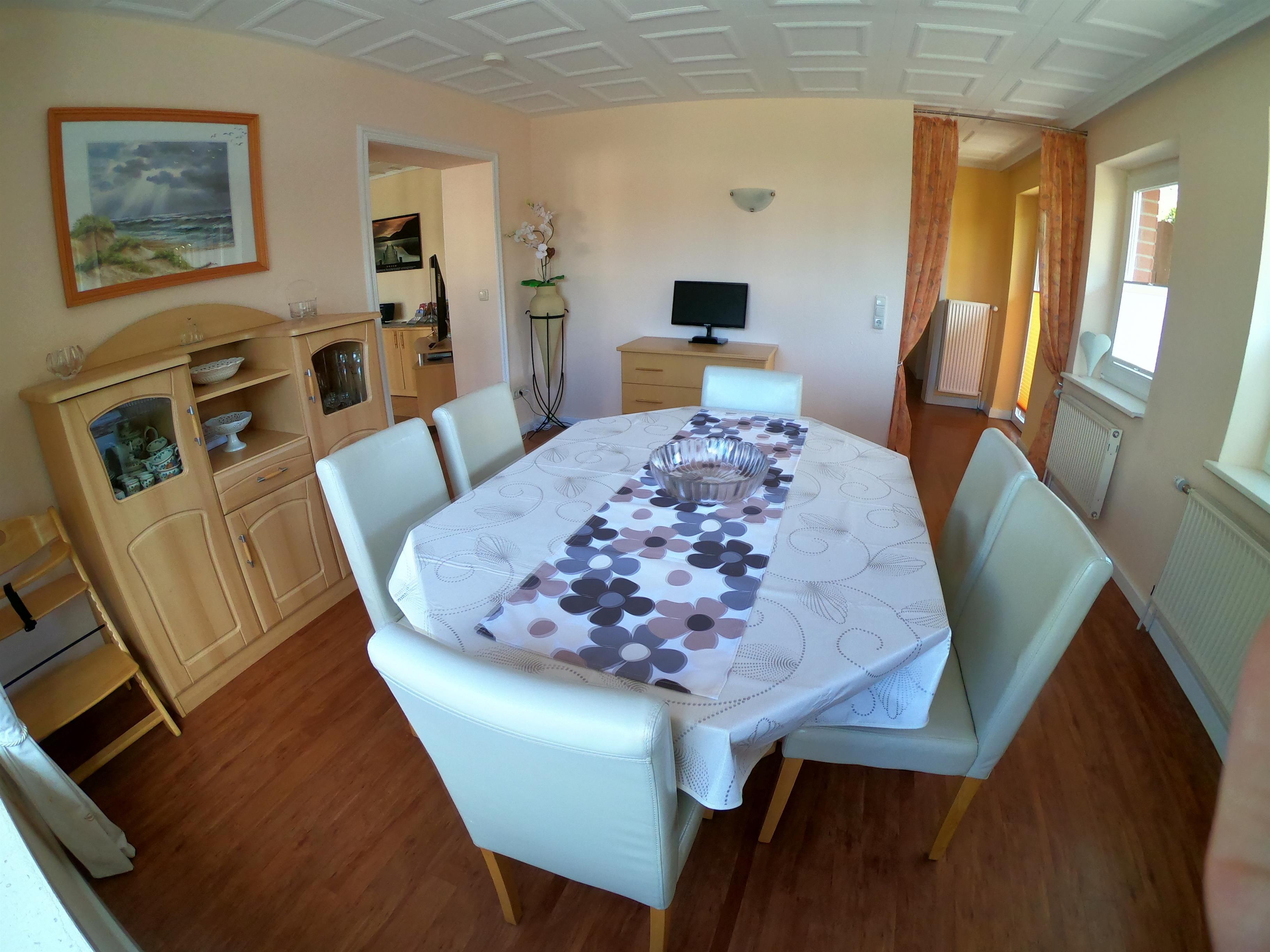 Die Wohnung Nr. 8 im Gästehaus Siebrecht ist ein großzügiges 4-Zimmer-Appartement. Es liegt im Erdgeschoss und bietet Platz für maximal vier Erwachsene. Im Wohnzimmer ist Platz für ein Zustellbett für die 5.Person. Die Wohnfläche der ca. 88 m² großen Unterkunft verteilt sich auf ein großes Wohnzimmer, ein Esszimmer, die Küche, zwei separate Schlafzimmer sowie zwei Badezimmer. Das Wohnzimmer ist mit einer großen gemütlichen Sitzecke sowie zwei weiteren kleinen Sitzecken, Musikanlage und einem Fernseher ausgestattet. Von hier aus gelangen Sie zum Esszimmer (keine Tür vorhanden). Vom Esszimmer aus haben Sie Zugang zur modernen Küchenzeile. Die Küche ist u.a. mit 4-Plattenherd, Eierkocher, Mikrowelle, Kaffeemaschine, Spülmaschine, Kaffeeautomat und vielen weiteren Küchengeräten ausgestattet. Die eigene möblierte Terrasse ist von der Küche aus zugänglich. Esszimmer und Küche sind nicht durch eine Tür voneinander trennbar. Beide Schlafzimmer sind mit einem Doppelbett (180 x 200 cm -