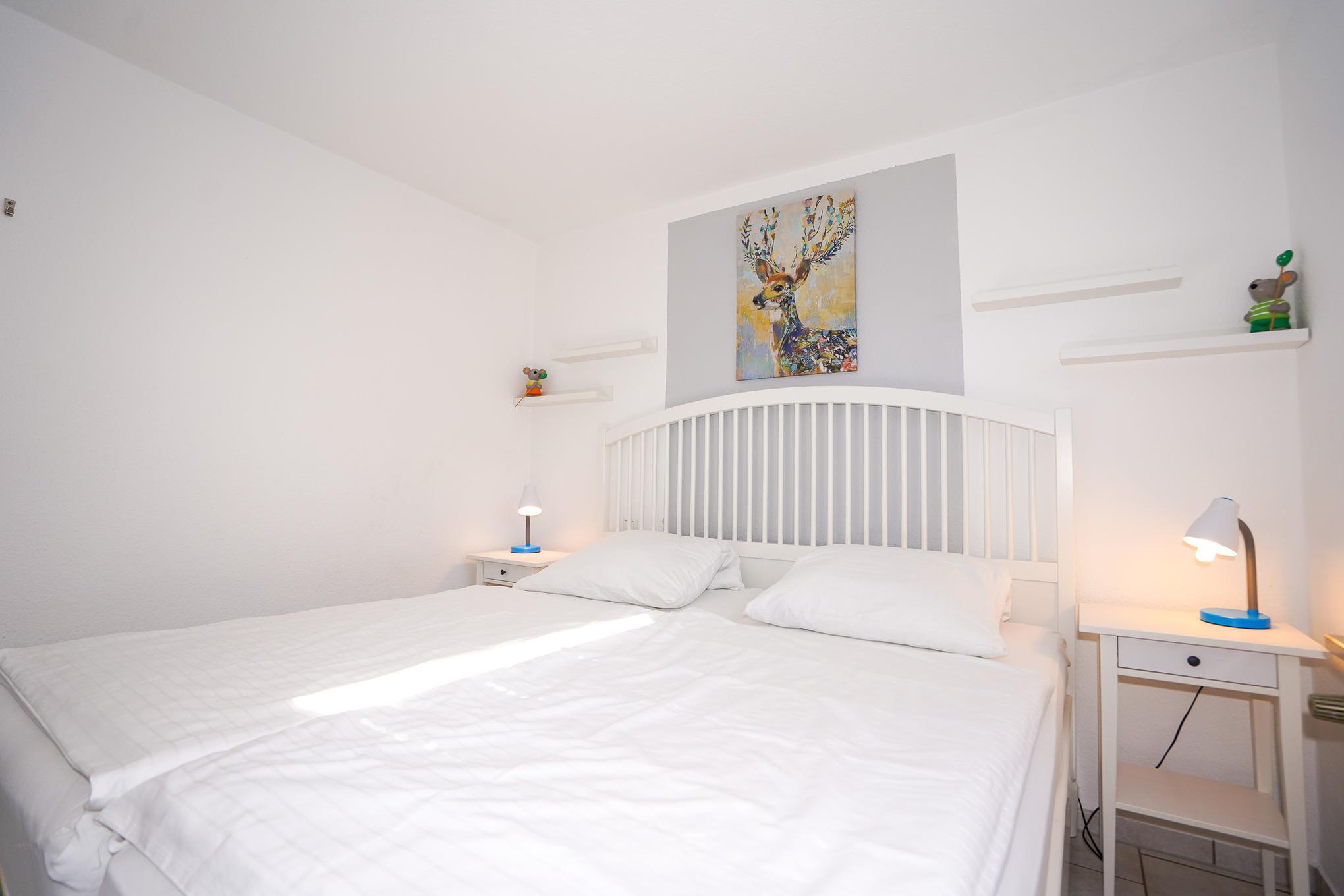 Die modern ausgestattete Wohnung mit einer Größe von ca. 42 qm ist für bis zu 4 Personen eingerichtet. Im Wohnzimmer mit SAT-TV befinden sich eine Schlafcouch, zwei gemütliche Sessel, sowie ein Esstisch mit Stühlen. In der Küchenzeile finden Sie neben Backofen und den üblichen Elektrogeräten auch eine Spülmaschine und eine Mikrowelle vor. Neben dem Schlafzimmer mit Doppelbett und Kleiderschrank steht Ihnen ein barrierefreies Duschbad mit WC zur Verfügung.