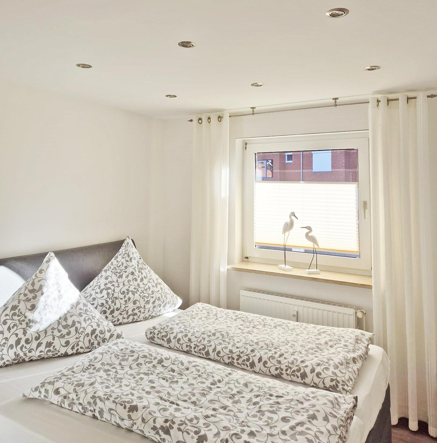 Das größere Schlafzimmer ist mit einem hochwertigen Boxspringbett (160x200cm), einem Kleiderschrank und einem TV eingerichtet. Im kleineren Schlafzimmer findet man ein Bett in der Größe von 90x200cm und einen kleinen Kleiderschrank mit TV. Das Badezimmer ist mit einer Dusche, einem Waschbecken sowie einem WC ausgestattet. Eine Handtuchheizung sorgt für angenehme Wärme. Alle Fenster sind mit Außenjalousien versehen.