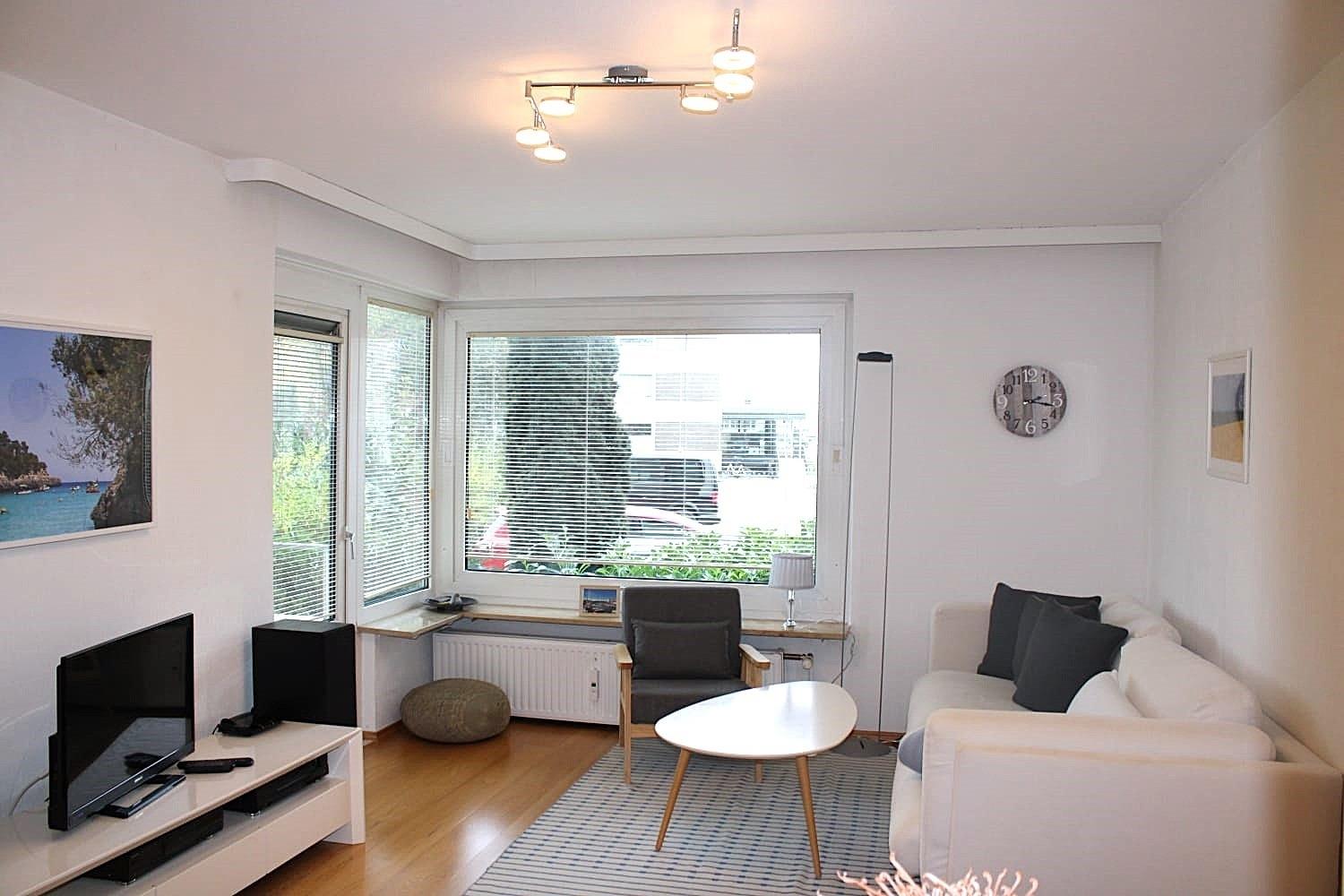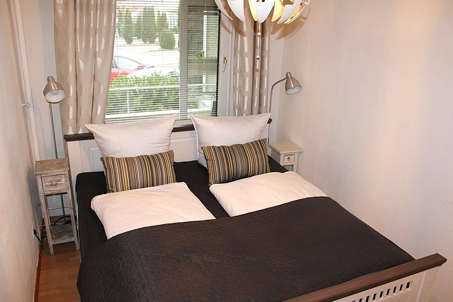 Es gibt 2 Schlafzimmer und das gemütliche Wohnzimmer mit Fernseher, lädt zum verweilen ein.