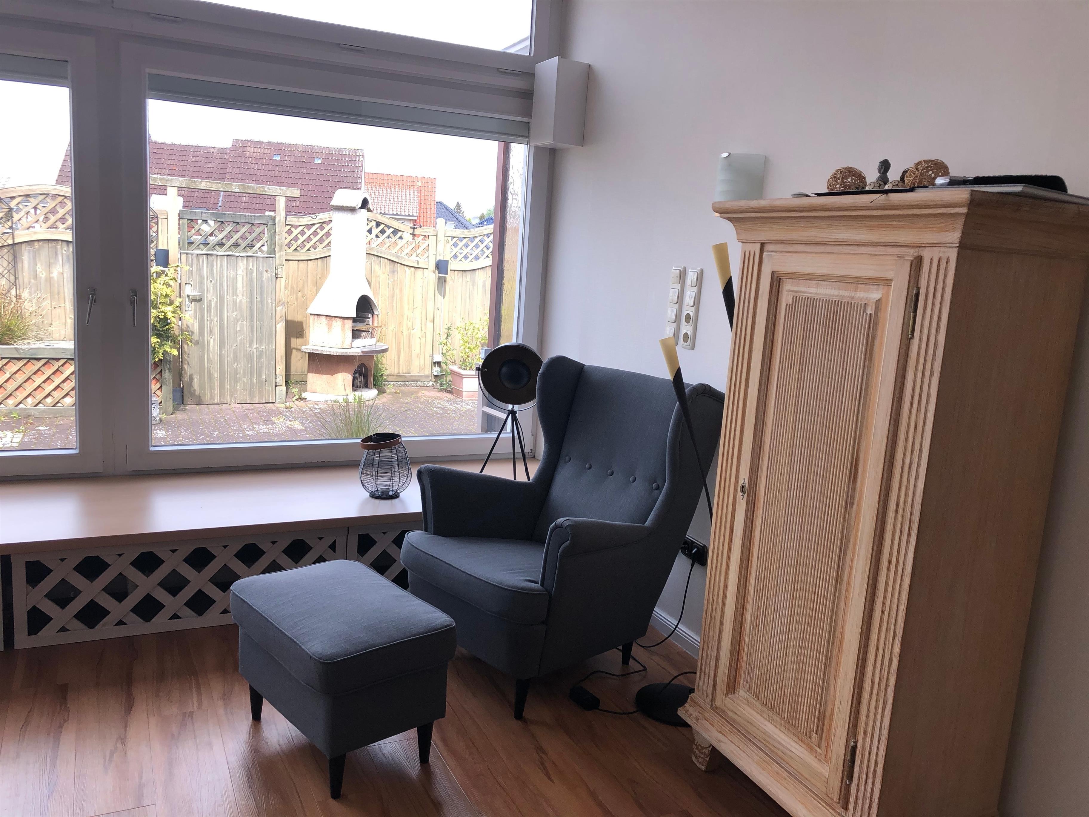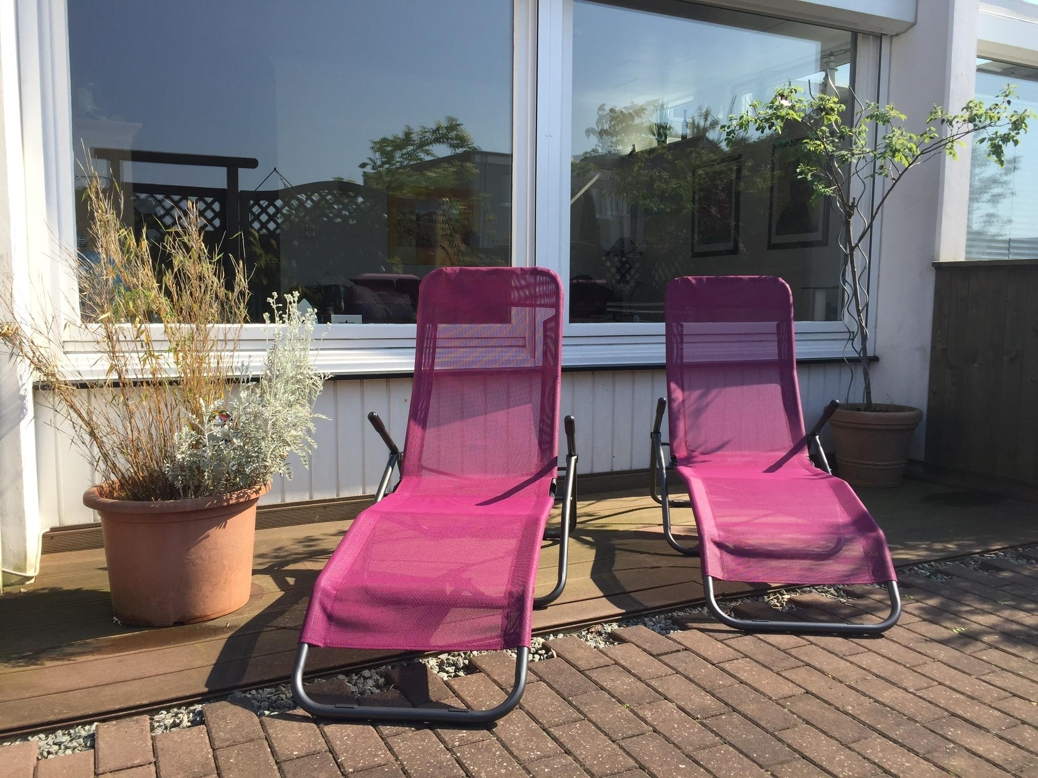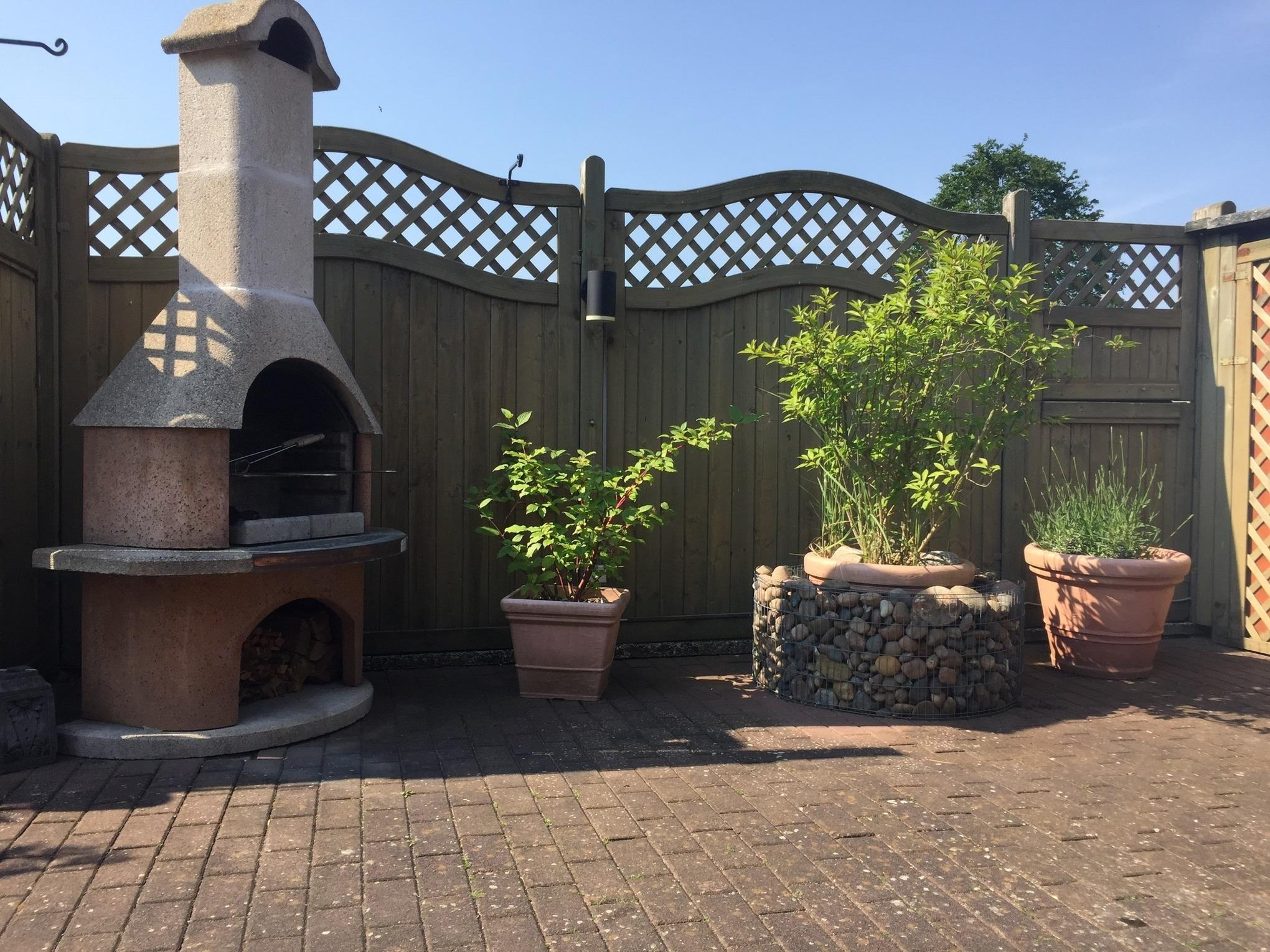 Wir bitten unsere Gäste, ausschließlich draußen zu rauchen. Eine große sichtgeschützte und schön begrünte Terrasse ist direkt im Eingangsbereich gelegen und verfügt über Liegen, einen Tisch mit Stühlen, einen Außenkamin mit Grill und einen Abstellraum zur alleinigen Nutzung.