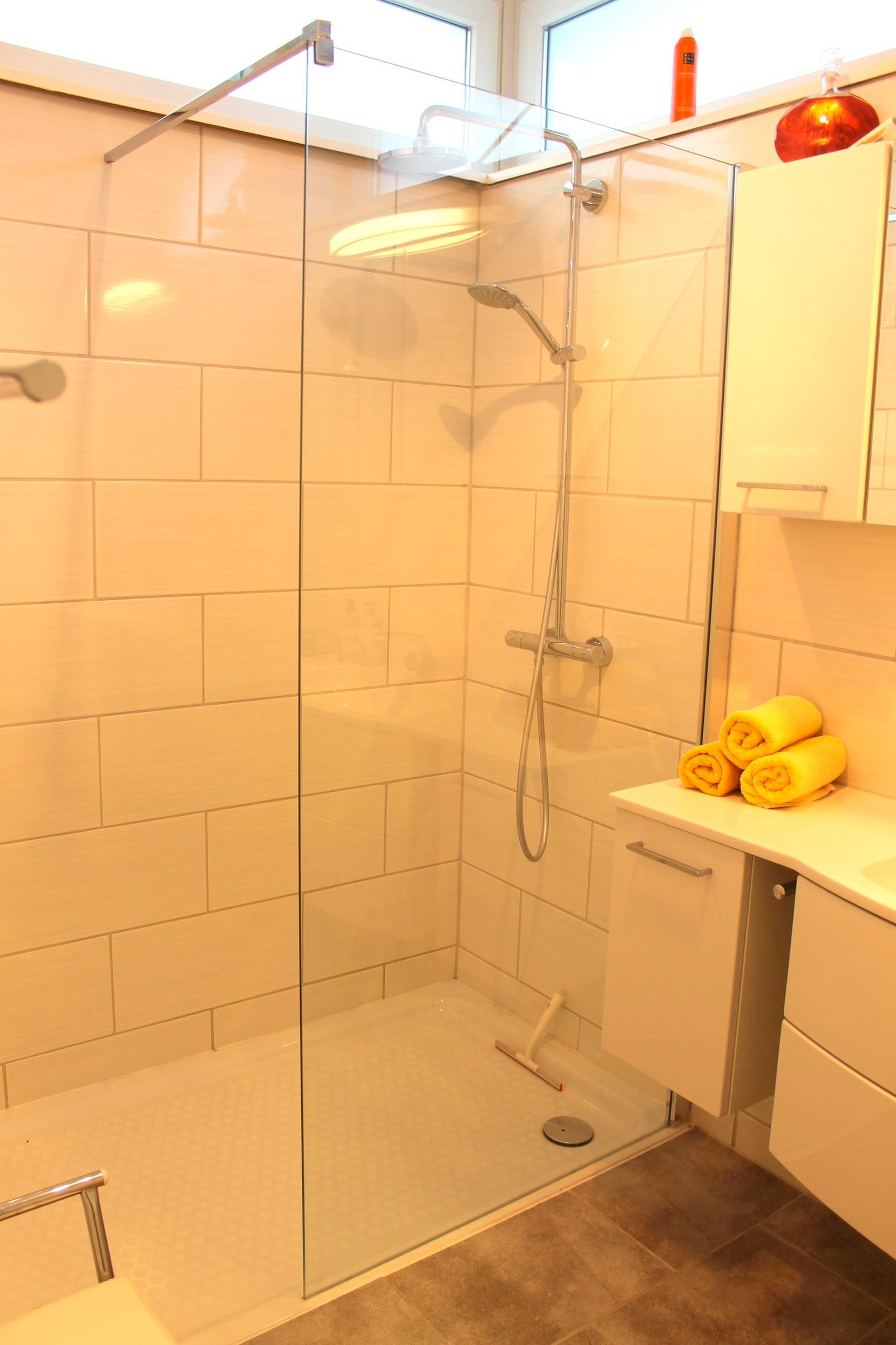 Das größere Schlafzimmer ist mit einem Doppelbett 1,80 x 2,00 m sowie einem großen Kleiderschrank versehen, von hier haben Sie direkten Zugang zum Tageslicht-Badezimmer. Dieses ist mit einer ebenerdigen Dusche, WC und einem großen Waschtisch ausgestattet, Barrierefreiheit ist hier gegeben.